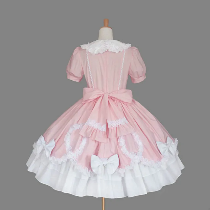 Kawaii/готическое платье лолиты для девочек; Розовое милое платье лолиты; Платье в стиле ретро с кружевным бантом и воротником в стиле Питера Пэна; Платье принцессы в викторианском стиле