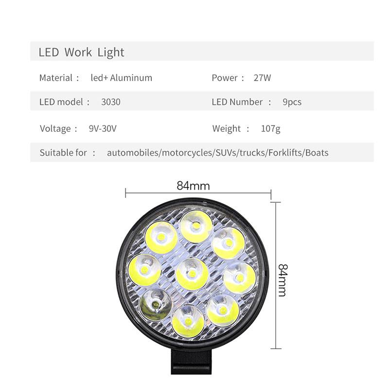 * 27 Вт 9-светодиодныйВодонепроницаемыйСветильник для автомобильного грузовика
