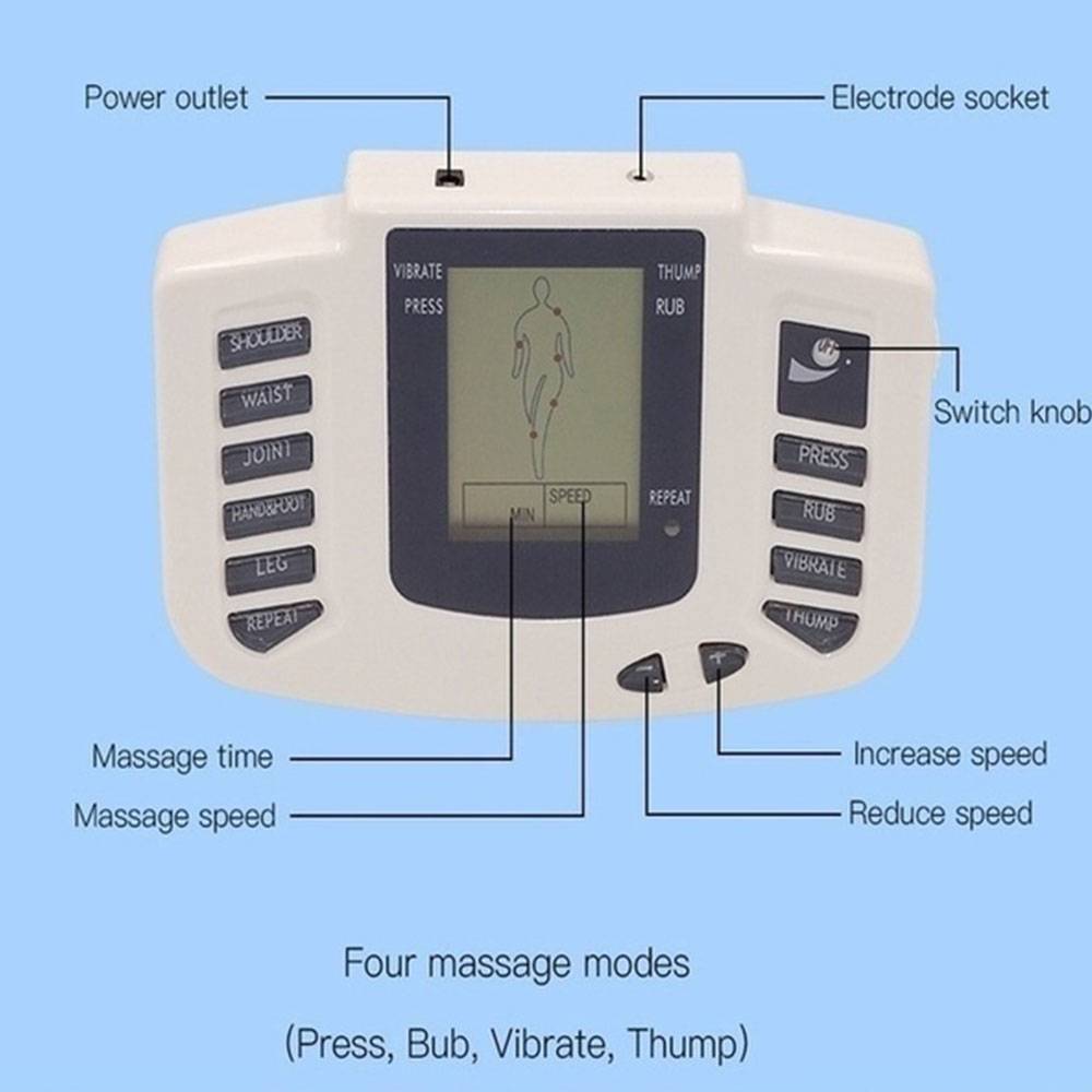 Лечение: Пульсация вибрации, акупрессура, массаж, царапины и царапины. Акупунктура, царапины, банки, массаж и другие функции. Электронный Пульс улучшает кровообращение и облегчает боль