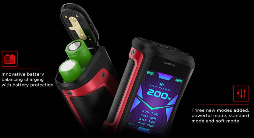 Мод Aegis X питается от двух батарей 18650 с максимальной мощностью 200 Вт. Он оснащен 2,8-дюймовым OLED-дисплеем для четкого отображения подробных данных о парении. Оснащен новым чипсетом AS 2,0, он обеспечивает выдающуюся точность, стабильную выходную мощность и более быстрый отклик. Благодаря защите от воды, ударов и пыли IP67 вам больше не нужно беспокоиться о дожде или случайном падении. Доступны в 8 видов цветов: золотой черный, Радужный черный, невидимый черный, зеленый черный, фирменный оранжевый, красный черный, бронзовый камуфляж, Классический Серебряный. Размер: 90x31,3x56,1 ммЭкран дисплея: цветной OLED-экран 2,4 дюймаВыходная мощность: 5-200 ВтВходное напряжение: 6,2-8,4 вВыходное напряжение: 0,1 в-12 ВКонтроль температуры: 100-315 °/200-600 °Диапазон сопротивления: 0,05 Ом-3,0 ОмТип аккумулятора: двойные аккумуляторы 18650 (не входят в комплект)Режим: память (M1-4)/питание/TC (SS, Ni, Ti, TCR)/VPC/BypassМеню: Авто/Тема/цвет/версия/ABB/сбросТемпературный сигнал PCBA: 80 °Рабочая температура:-10-45 °Ток в режиме ожидания: менее 10 мкАТребования к зарядке: 5 В/2 А 1. Питание от двух батарей 18650 с максимальной мощностью 200 Вт2. Экран OLED 2,4 дюйма3. Новый чипсет AS 2,0 для высокой точности и стабильной выходной мощности4. IP67 водонепроницаемый, ударопрочный и пыленепроницаемый5. Оптимизированное положение кнопок для работы одной рукой6. До 6 высококачественных материалов для повышения прочности и удобства использования7. Инновационная Зарядка для балансировки аккумулятора с защитой аккумулятора8. Первоклассные функции безопасности для безопасного вейпинга9. Зарядка через USB и обновление прошивки10. Доступны в 8 видов цветов году: золотой черный, Радужный черный, невидимый черный, зеленый черный, фирменный оранжевый, красный черный, бронзовый камуфляж, Классический Серебряный 1 х Aegis x Mod1 х USB кабель1 х Руководство пользователя