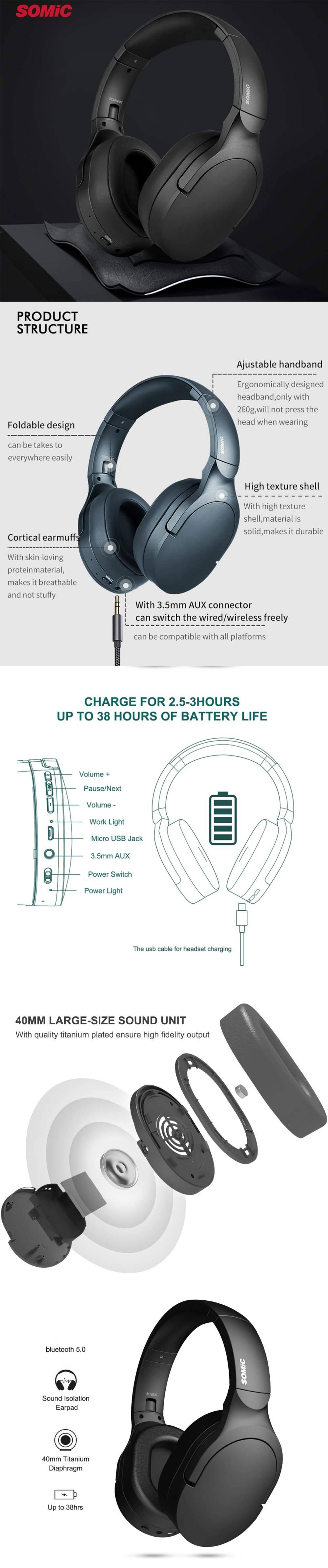 SOMiC SC2000BT bluetooth Игровые наушники USB/3,5 мм HIFI bluetooth 5,0 гарнитура складная стерео бас гарнитура с микрофоном для PS4