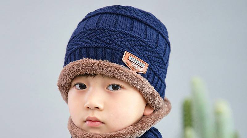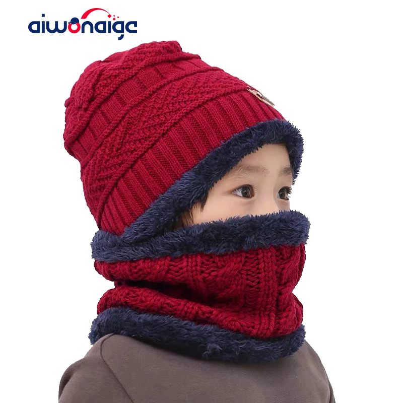 Вязаная шапка для мальчиков и девочек, комплект на лямках, теплая Повседневная Детская шапочка, бархатный шарф, шапка на зиму, 2 предмета, кожаная Лыжная маска для малышей