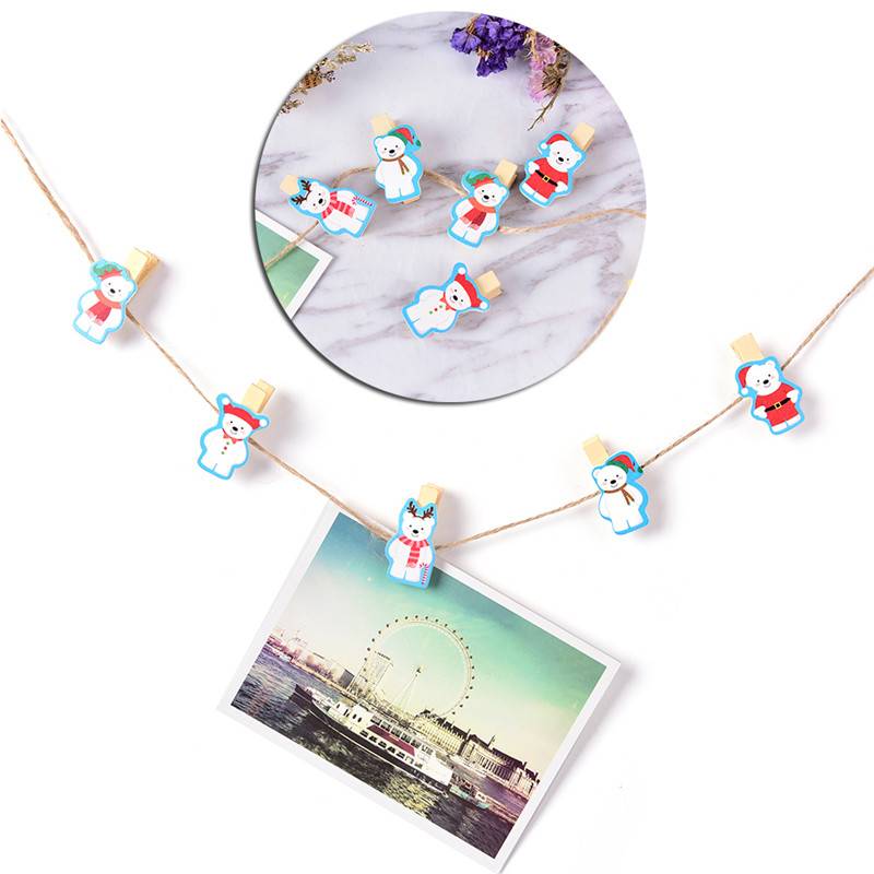 10 шт./компл. деревянные зажимы с изображением рождественского медведя мини деревянная одежда фотобумага прищепка ремесла зажимы с веревкой
