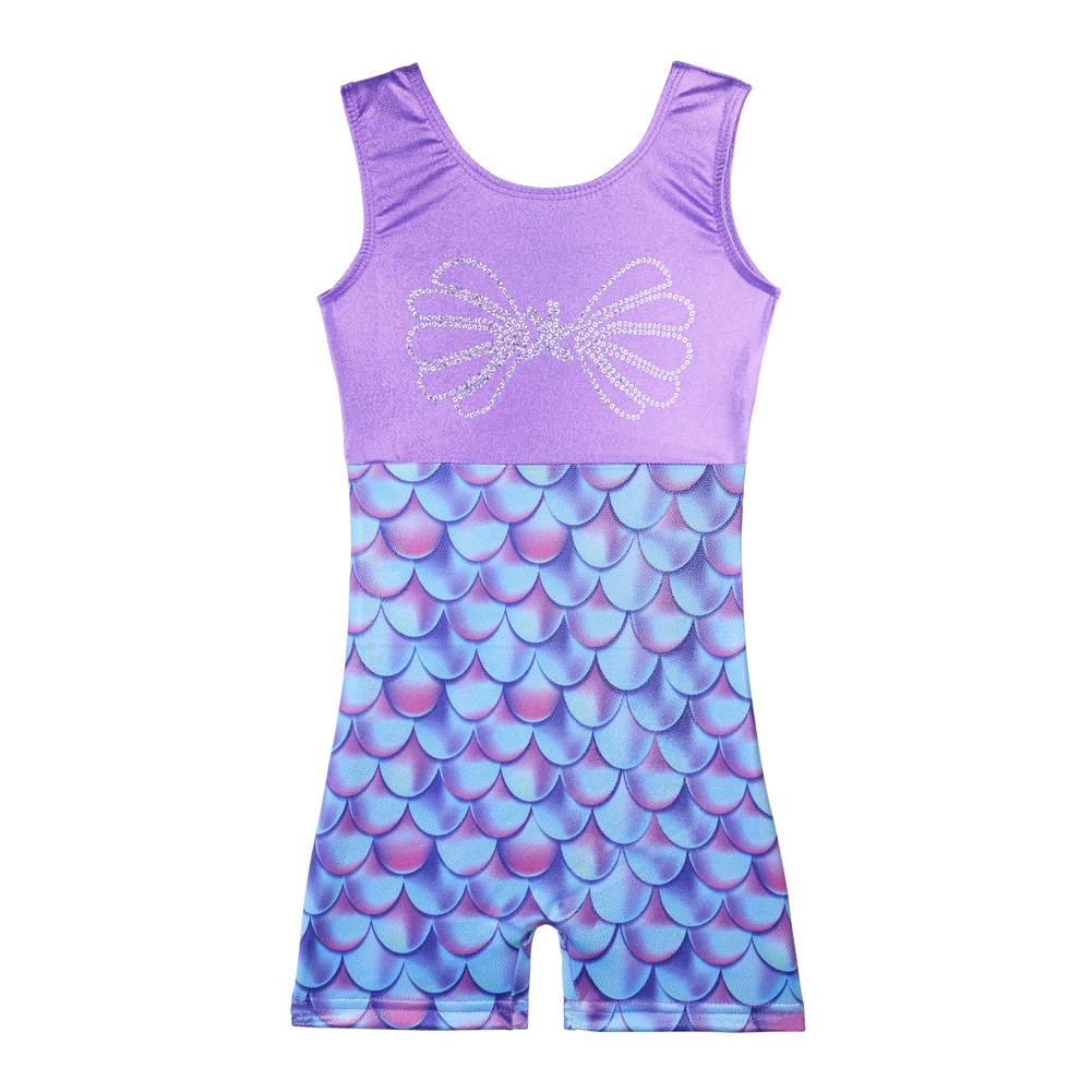 BAOHULU/Новинка, От 3 до 11 лет гимнастический купальник для девочек, балетный костюм для танцев без рукавов, фиолетовый, синий цвет, детские весы с рыбками