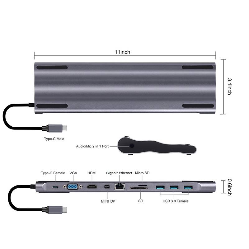 USB-C док-станция для Thunderbolt 3 адаптер 11in1 Тип C концентратор с HDMI RJ45 VGA USB3.0 все в одном USB Hub для MacBook & C-Тип ноутбук