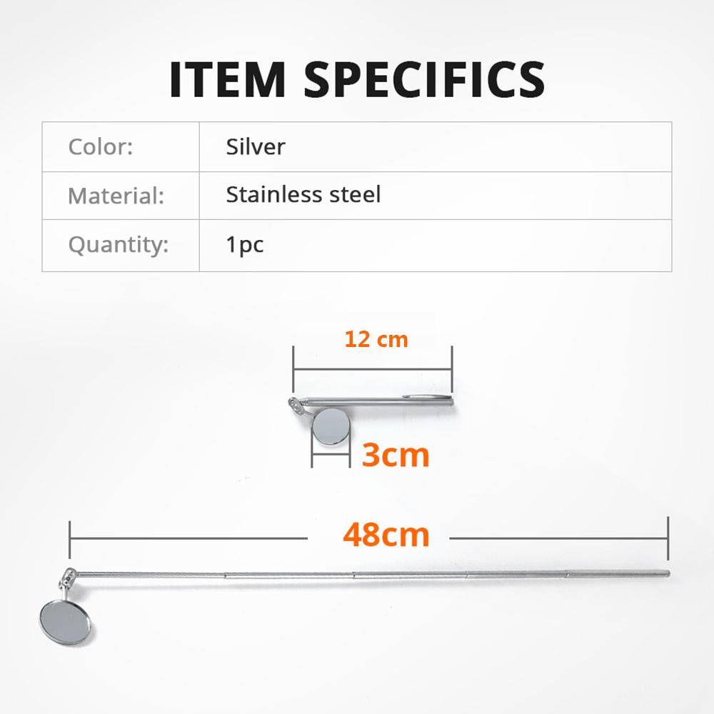 Made of alloy steel material for added durability. The telescoping mirror extends from 12cm to 50cm.