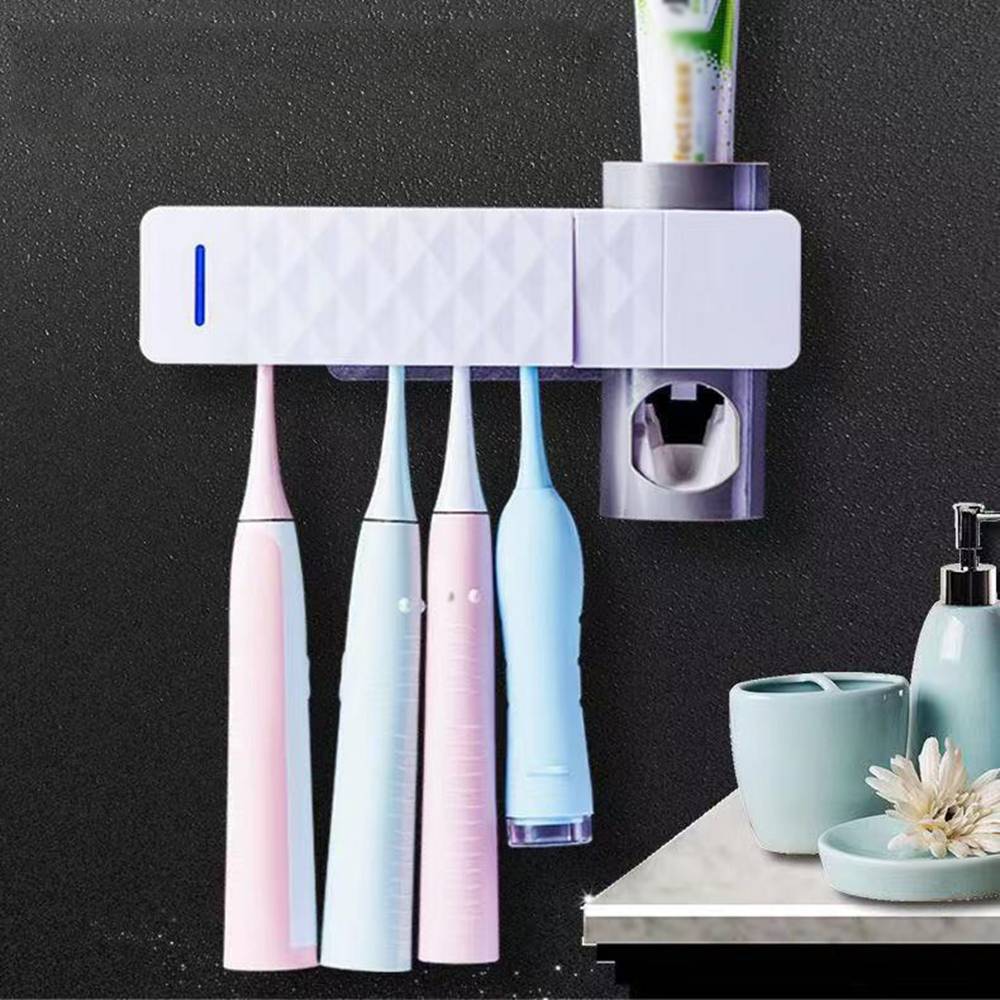 Характеристика Семейный дизайн может хранить до 5 зубных щеток. Держатель для зубной пасты и настенное крепление для экономии места. Совместимость с любой зубной пастой. УФ-лампа автоматически выключается через 4-5 минут. Спецификация Материал: АБС-пластик Адаптер: Входное напряжение: 100-240V 50/60Hz Ток на выходе: 9V 509mA Мощность УФ-излучения: 7 Вт Цвет: белый + серый Вес: 360 г Размер 23x5,6x6,5 см (держатель для зубной щетки) 13x5,6 см (дозатор зубной пасты) Пакет 1 х стерилизатор зубной щетки + дозатор зубной пасты Адаптер-1 шт. 1 х клейкая прокладка