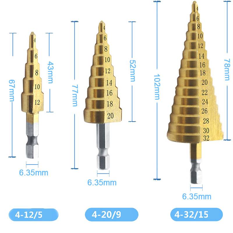 * Это новая HSS стальная большая ступенчатая конусная дрель, набор титановых бит, резец отверстий, который сделан из высококачественной HSS стали, и с титановым покрытием, чтобы уменьшить трение и тепло * Это очень подходит для использования для резки отверстий в различных материалах, включая сталь, латунь, дерево, пластик и т. Д. Особенности: -Изготовлен из высококачественной стали HSS -Идеально подходит для использования для резки отверстий из различных материалов, включая сталь, латунь, дерево, пластик, медь, стекловолокно и ПВХ и т. Д. -3 шт. набор сверл HSS, качественный инструмент для работы всех размеров -Титановое покрытие для уменьшения трения и тепла -Термообработка и полировка. Сверло делает точные круглые отверстия из стали, латуни, пластика, дерева и т. Д. -3-сторонняя голень дизайн для предотвращения проскальзывания в тех случаях, когда в патрон -Конструкция с двумя флейтами обеспечивает более быструю, плавную и чистую порезы. -Каждый шаг четко обозначен диаметром глубины -Аксессуары для ручного и электроинструмента, сверла Длина: 4-12 мм Длина: прибл. 6,7 см/2,64 дюйма 4-20 мм Длина: прибл. 7,4 см/2,91 дюйма 4-32 мм Длина: прибл. 10,2 см/4,02 дюйма 3 резца поставляются в следующих размерах: 4-32 мм (4 мм, 6 мм, 8 мм, 10 мм, 12 мм, 14 мм, 16 мм, 18 мм, 20 мм, 22 мм, 24 мм, 26 мм, 28 мм, 30 мм, 32 мм) 4-20 мм (4 мм, 6 мм, 8 мм, 10 мм, 12 мм, 14 мм, 16 мм, 18 мм, 20 мм) 4-12 мм (4 мм, 6 мм, 8 мм, 10 мм, 12 мм) AЭта ссылка только для размера 4-32 мм, если вам нужен другой размер, пожалуйста, закажите по этой ссылке, спасибо.