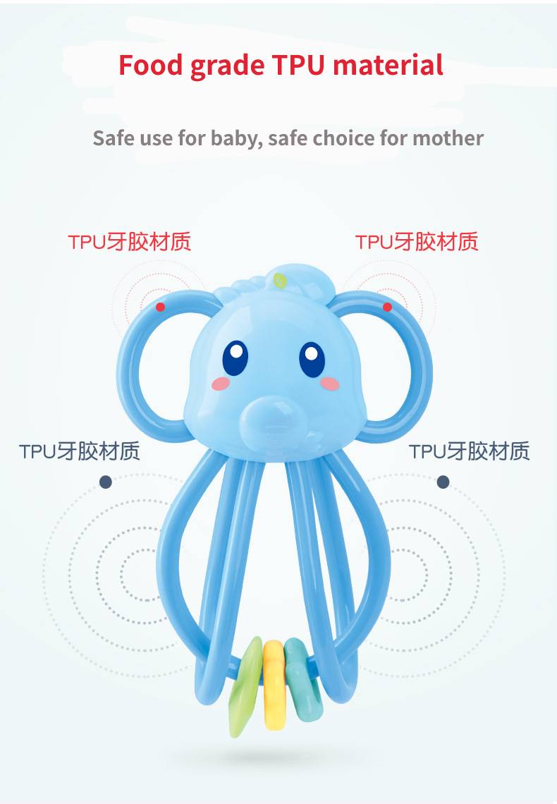 Животное Прорезыватель для зубов Размеры: 15*15*11 см Безопасный материал ТПУ, может кусаться Тряска издает звук Может быть дезинфицирована горячей водой Форма: Кролик, слон, олень Посылка: нет оригинальной цветной коробки, чтобы сэкономить на стоимости доставки.