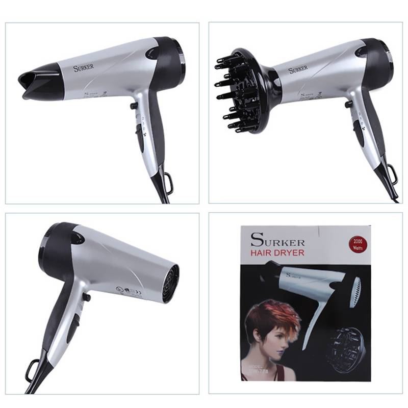 Функция: 2000 Вт Высокая мощность/3 скорости управления, быстрое высыхание волос, конструкция с постоянной температурой, технология теплового баланса, двойная защита от перегрева, увеличенная система воздухозаборника