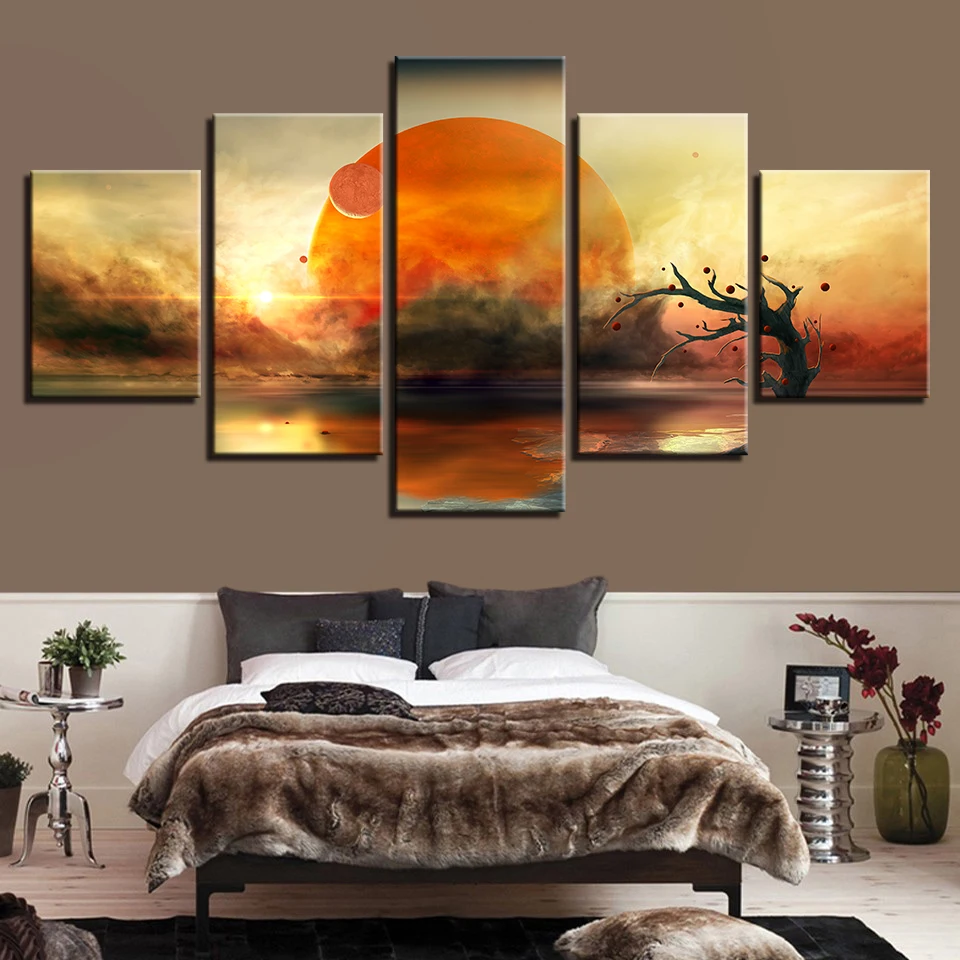 Modname = ckeditorHD печатные картины на холсте Декор для дома настенная живопись 5 шт. дерево и абстрактные земли планеты Солнечный свет Пейзаж Модульная картина в рамке
