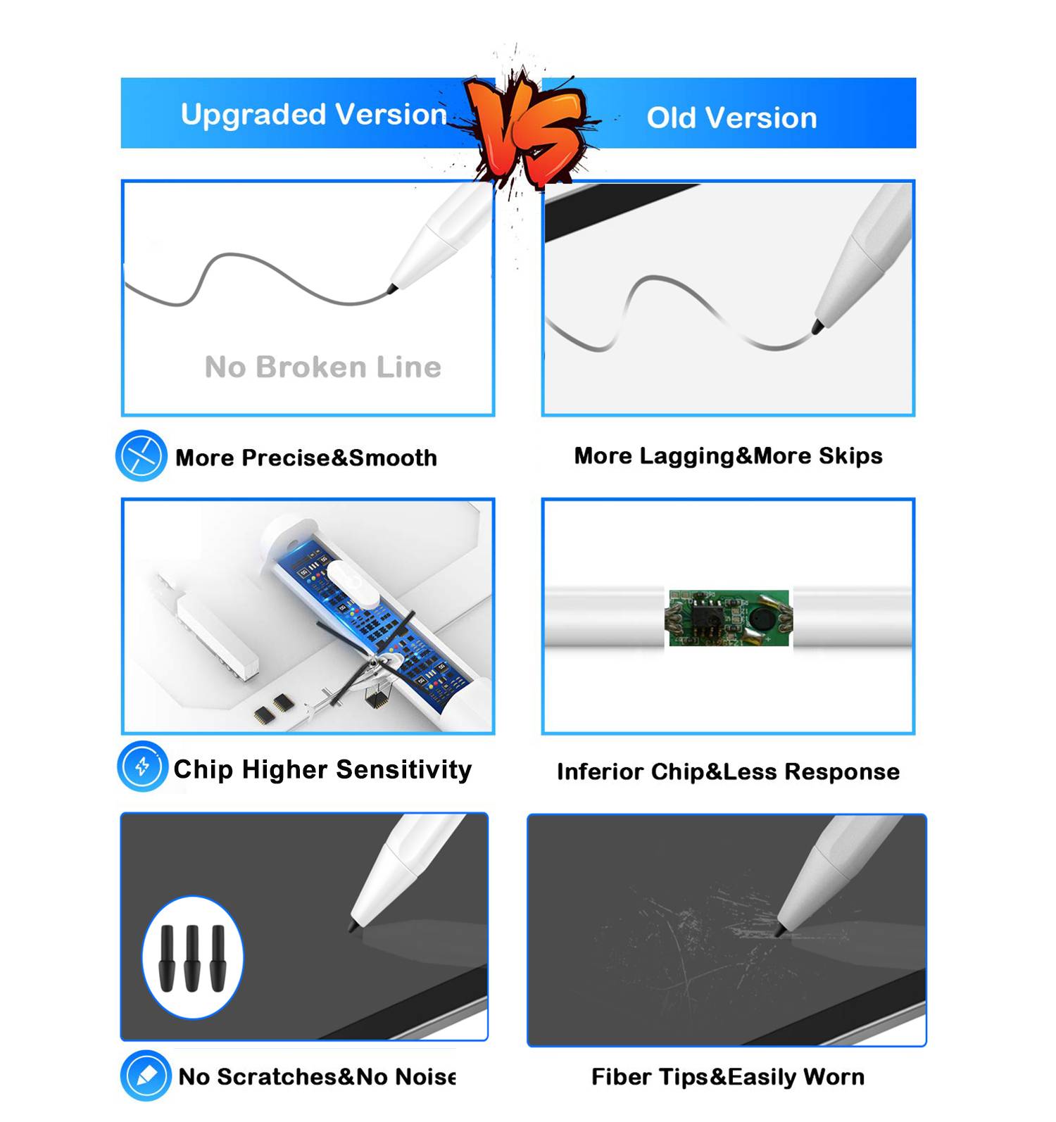 В1: Как выбрать правильный наконечник ручки? A1: оригинальный наконечник ручки используется для несколько лет без износа и высокой чувствительности. Если для вашего iPad со стеклянной защитной пленкой, оригинальный наконечник ручки-лучший выбор; -- Если для Вашего iPad без протектора экрана или с матовой защитной пленкой, вы можете использовать запасные ручки с тем же материалом, что и для карандаша Apple. (Мы тщательно сконфигурировали два пластиковых наконечника с одним и тем же материалом для apple; Все знают, что тот же материал для apple будет изнашиваться, Так с двумя) -Однако рекомендуется использовать Защитное стекло для экрана, чтобы использовать оригинальный наконечник ручки, который может длиться несколько лет; В2: если я обнаружу, что штрихи прерываются после использования на некоторое время, как я могу решить эту проблему? A2: Снимите ручку и перезагрузите ее.