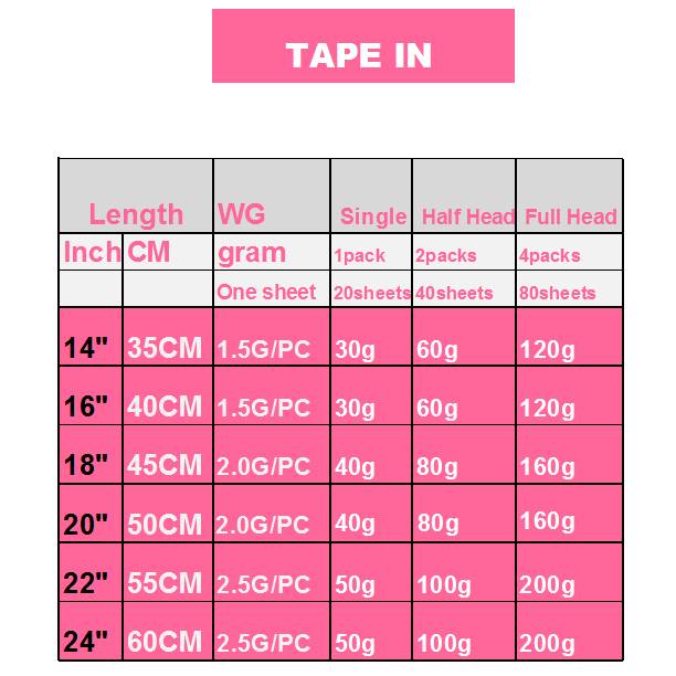 7 длина: 14 "= 35 см, 16" = 40 см, 18 "= 45 см, 20" = 50 см, 22 дюйма = 55 см 24 "= 60 см