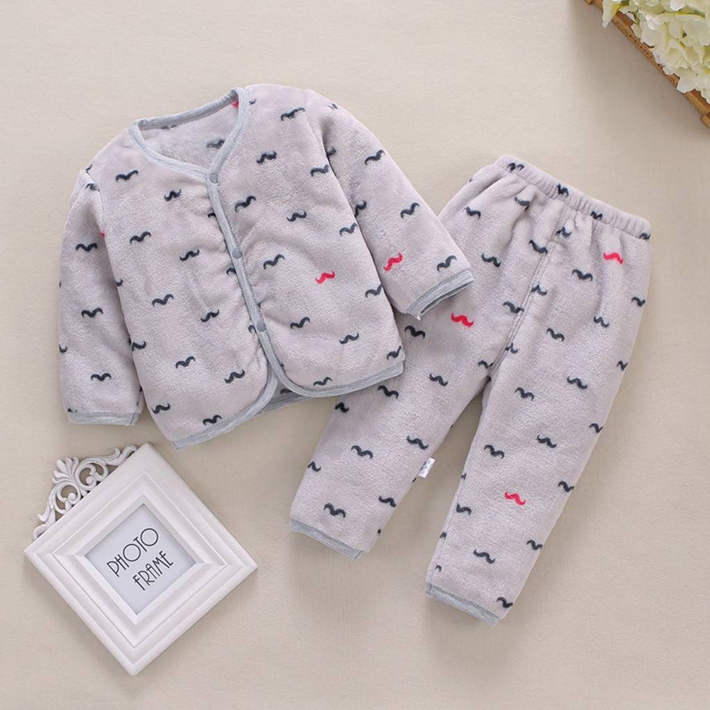 Теплый флисовый комплект для новорожденных мальчиков и девочек, комплект из топа и брюк, Пижама, одежда для сна