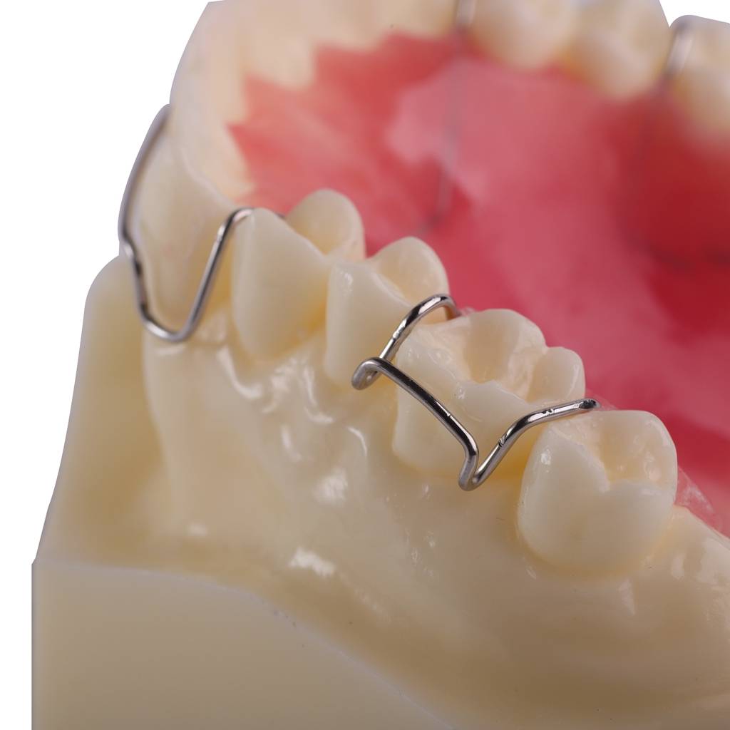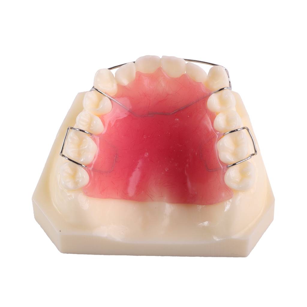 Демонстрирует Холи фиксатор, включая металлический провод, который обычно окружает шесть передних зубов;