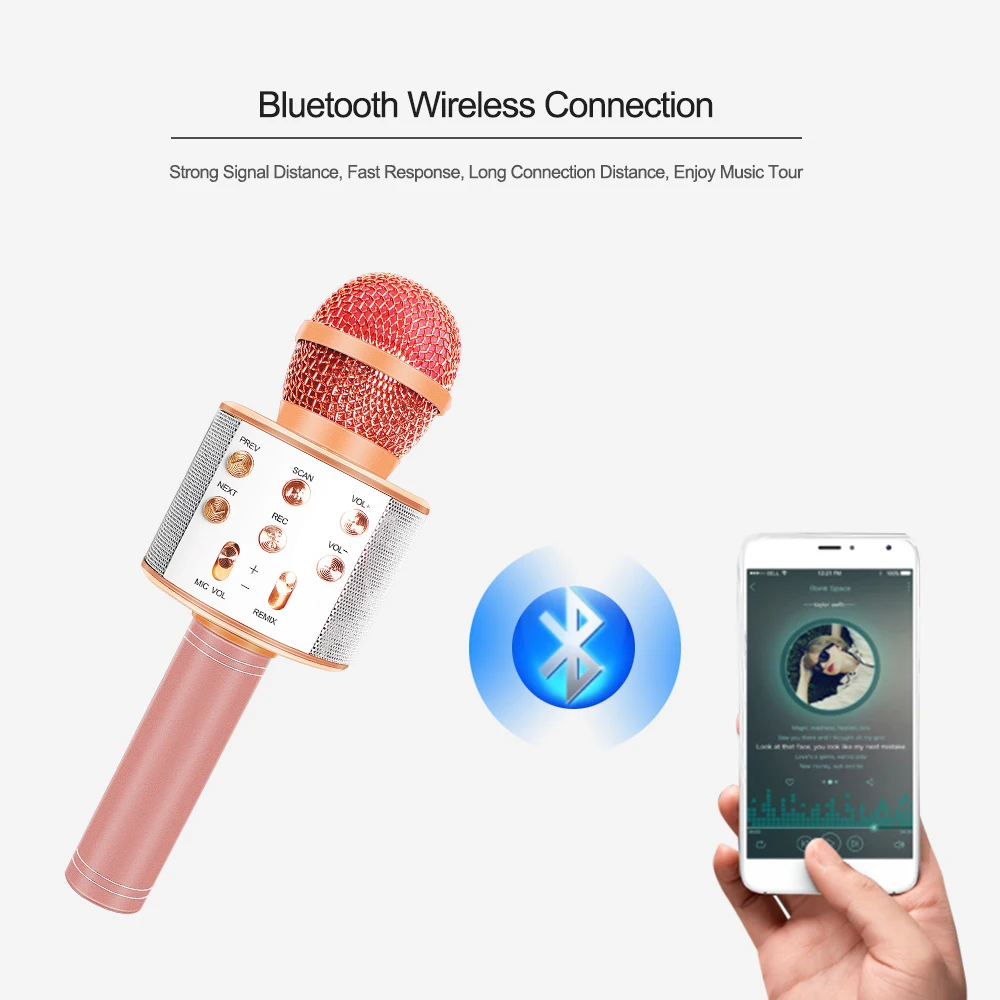 Несколько функций: Это волшебный микрофон + bluetooth-динамик, вы можете записывать песни и записывать их, чем проигрывать свою песню!