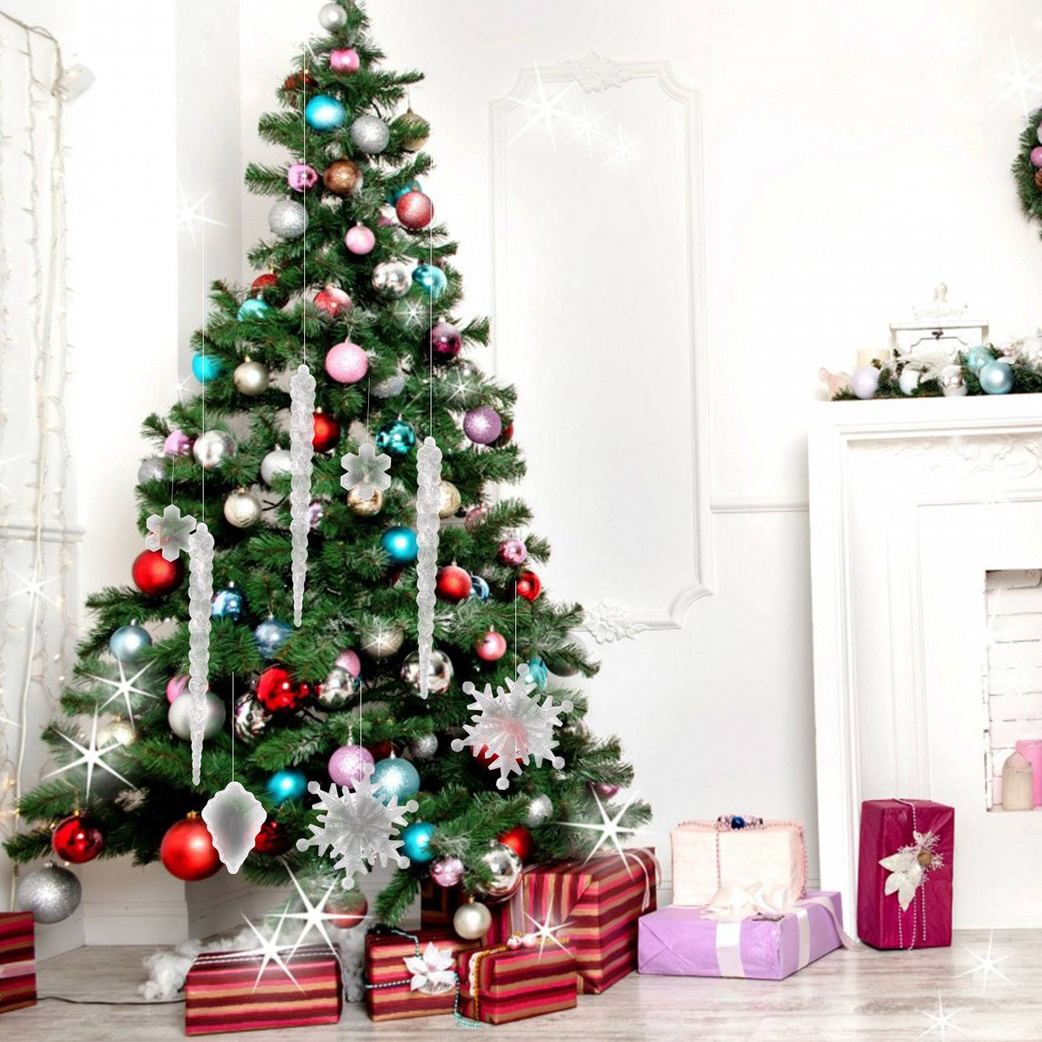 Вы получите 45 пластиковых украшений, в том числе 10 рождественских деревьев, 10 сосульков и 25 снежинок