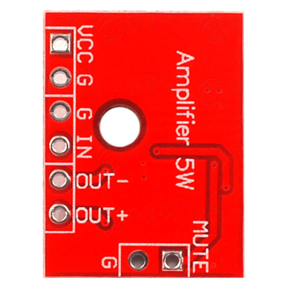VCC: DC2.5-5.5V (рекомендуется 5 В) G: мощность заземления/аудио заземления (совместно) IN: аудио вход + Выход: динамик + Выход: динамик- (4Ω-8Ω) рекомендуемый динамик 3W4R