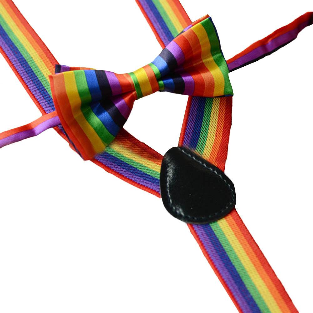 Детский комплект с разноцветными подтяжками и радужным галстуком-бабочкой для мальчиков и девочек, Детский комплект с разноцветным галстуком-бабочкой на застежке для брюк