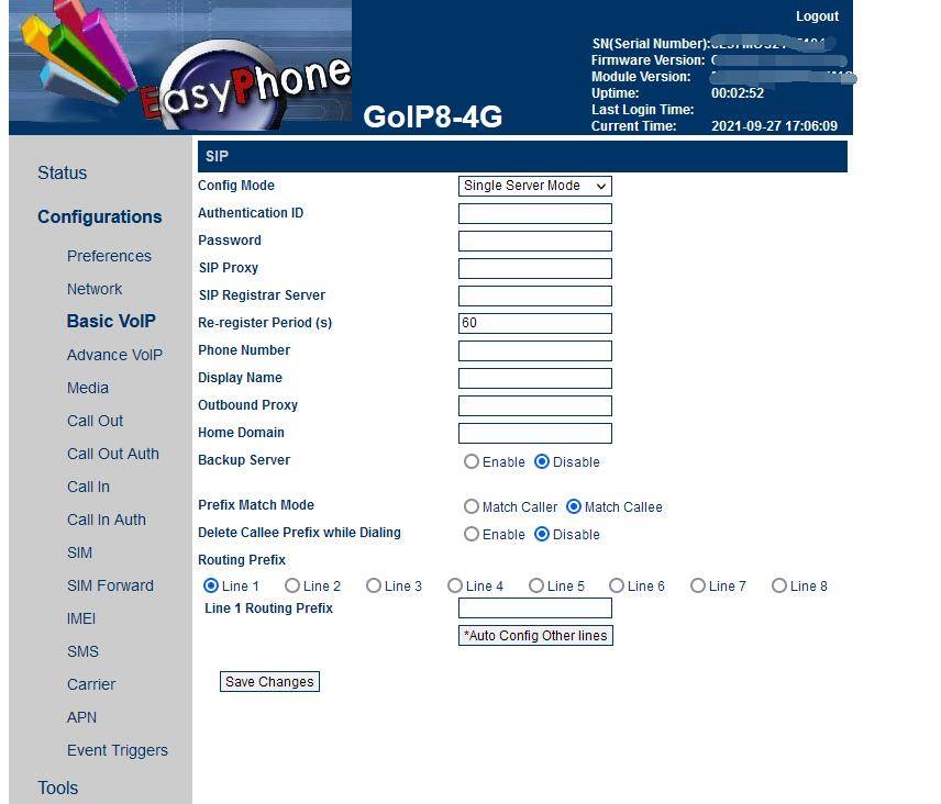 GoIP8-4G/ - EC20 Версия модуля: