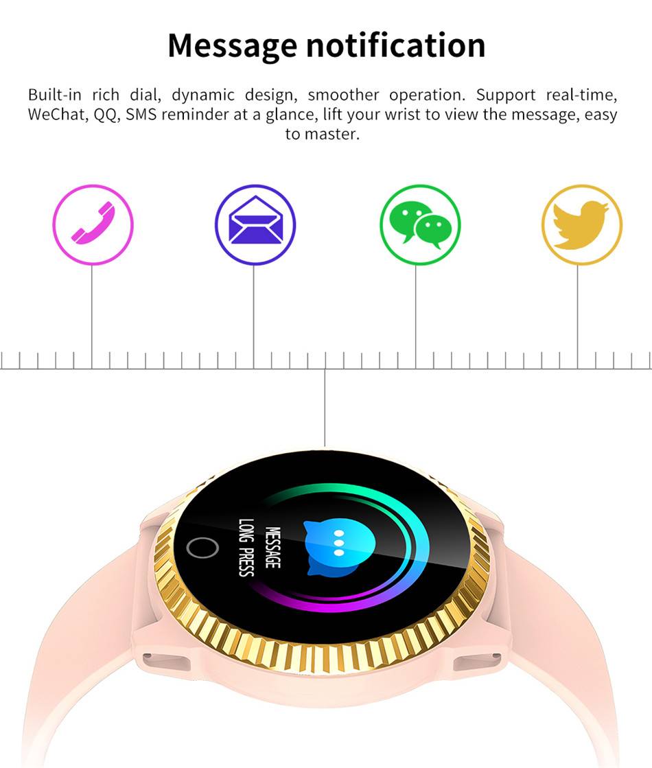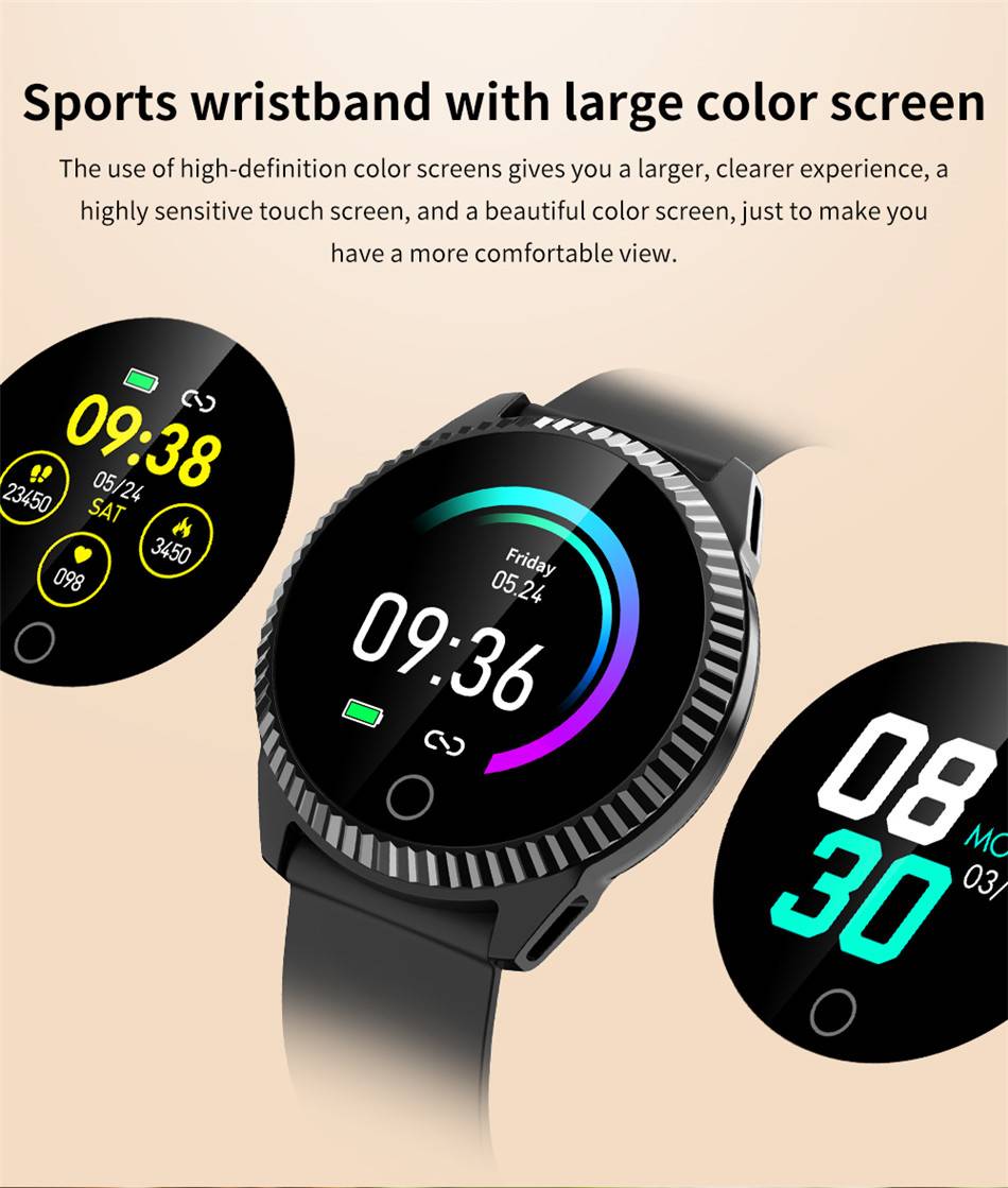 Водонепроницаемый IP67 Монитор сердечного ритма Поддержка Крови Давление монитор Поддержка Для отображения данных по содержанию кислорода в крови Поддержка Монитор наблюдения за сном Поддержка Поддержка нескольких спортивных режимов Шагомер Поддержка Вызова ormessage напоминание Поддержка Отклонение входящего звонка Поддержка Поддержка уведомлений Facebook,Twitter,Wechat, WhatsApp и т. Д. Оповещение о Тип вибрации Автоматический светильник-Поддержка экрана Секундомер Поддержка Другие функции поддерживают будильник, календарь, напоминание о сидячем положении, дистанционное управление камерой, защита от потери, Технические параметры Датчик g-сенсор, датчик сердечного ритма Размер экрана: 1,3 дюймов Тип: на тонкопленочных транзисторах на тонкоплёночных транзисторах Разрешение: 240*240 пикселей Емкость аккумулятора: 180 мАч Время работы в режиме ожидания: около 7-15 дней Время использования: около 5 дней Время зарядки: около часов Тип зарядки: Магнитная Зарядка/док-станция/зажим для зарядки
