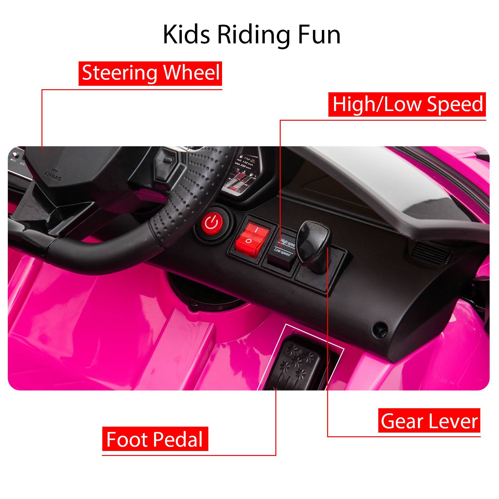 🚗Два режима: родительский пульт дистанционного управления и ручная работа ребенка. Родитель может помочь управлять этим автомобилем с помощью пульта дистанционного управления (3 скорости переключения), если ребенок слишком мал. Ребенок может управлять этим автомобилем самостоятельно/самостоятельно педалью и рулевым колесом (2 скорости переключения). 🚗Многофункциональные функции: встроенная музыка и история, AUX шнур, порт TF и USB порт для воспроизведения вашей собственной музыки. Встроенный звуковой сигнал, светодиодный фонарь, вперед/назад, поворот вправо/влево, тормоз свободно; Переключение скорости и реальный звук двигателя автомобиля. 🚗Лицензиат LAMBORGHINI: соответствует стандартам ASTM F963. Реалистичные Запираемые Ножничные двери с крыльями, как бабочка. Портативная ручка для легкого перемещения при разрядке аккумулятора. Маленькое хранилище для хранения детских закусок или игрушек и т. д. 🚗4 колеса с подвеской: пружинная подвеска для комфортной и безопасной езды для детей, идеально подходит как для игр на открытом воздухе, так и для игры в помещении. Устройство медленного запуска предотвращает внезапное ускорение или замедление вашего ребенка. 🚗Характеристики: общий размер 48,4 ”* 26” * 17,7 ”(Д x Ш x В); Максимальная нагрузка 55 фунтов. Скорость: 2-5 км/ч. Подходит для детей 1-6 лет.