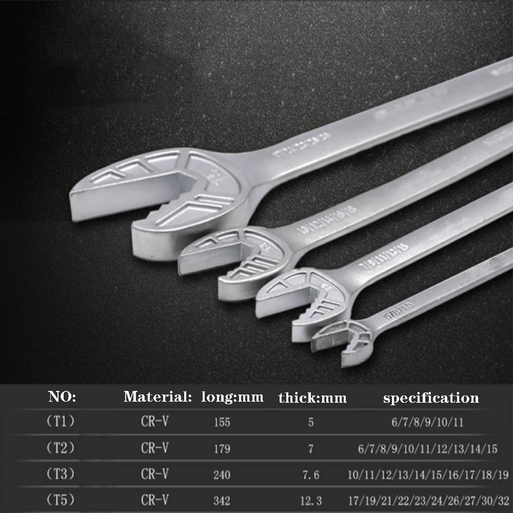 Ручной инструмент 6-32 мм универсальный гаечный ключ инструмент для ремонта автомобиля гаечные ключи высокой твердости динамометрический ключ краны сантехнические инструменты Материал: хромированная сталь Спецификация: T1: 6.7.8.9.10.11 мм T2: 6.7.89.1.10.11.12.13.14.15 мм T3: 10.11.12.13.14.15.16.17.18.19 мм T4: 16.17.18.19.21.21.22.23.24.26,27 мм T5: 17.19.21.22.23.24.27.30.32 мм