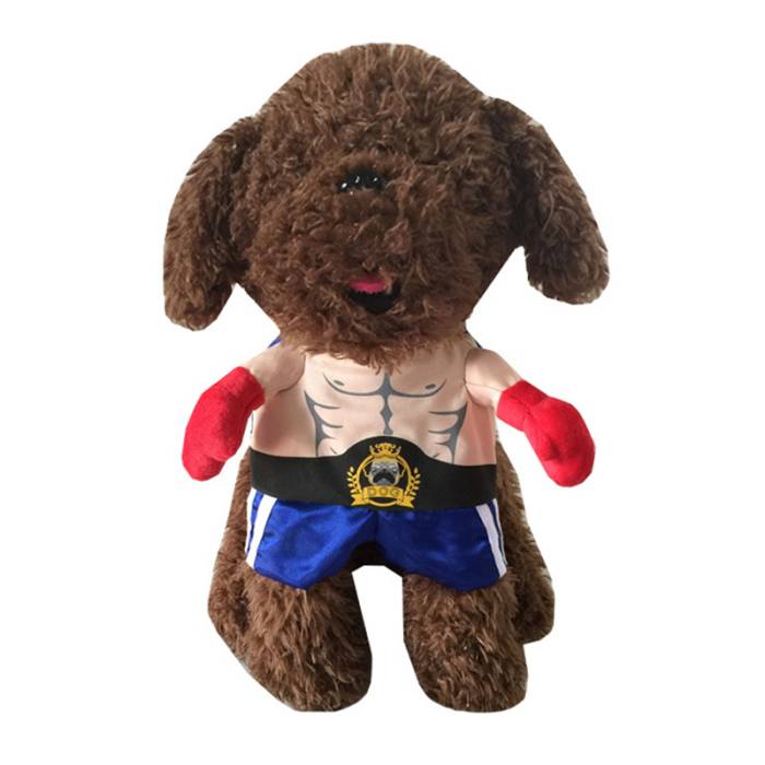 Собака меняется на боксера с этим костюмом, гордимся и имеет осанку победителя.