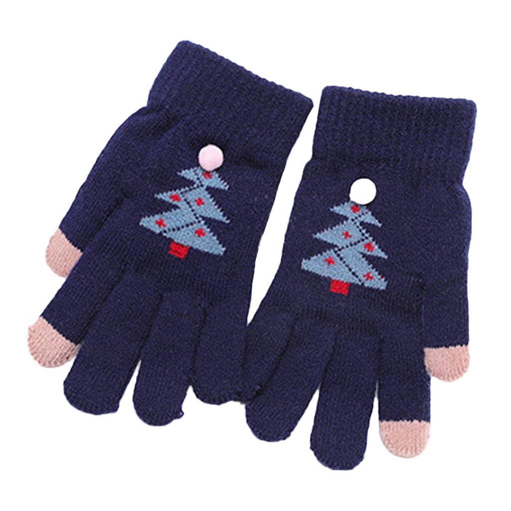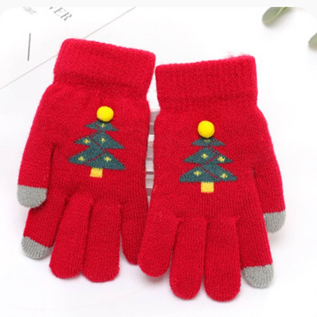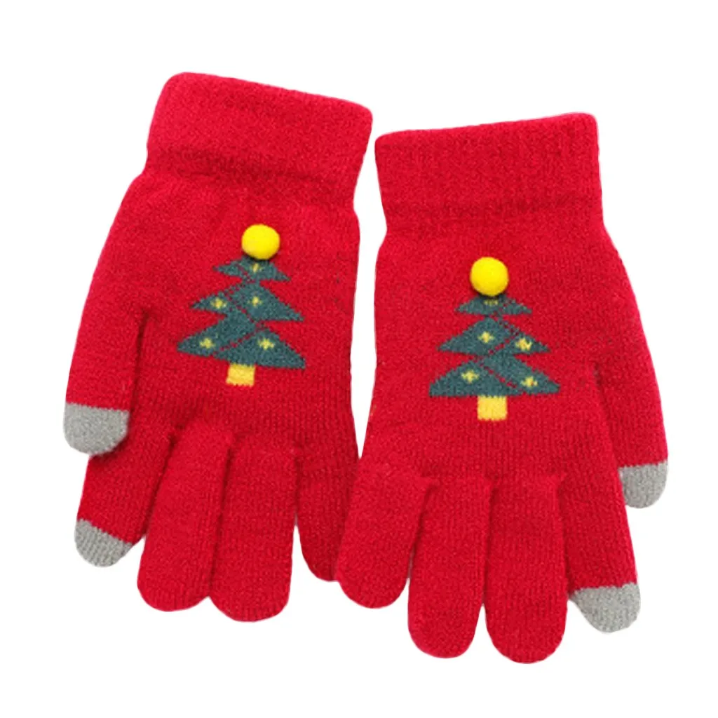 3PC Children Kids Mittens Winter Knitted Gloves Tree Printed Full Finger Gloves
