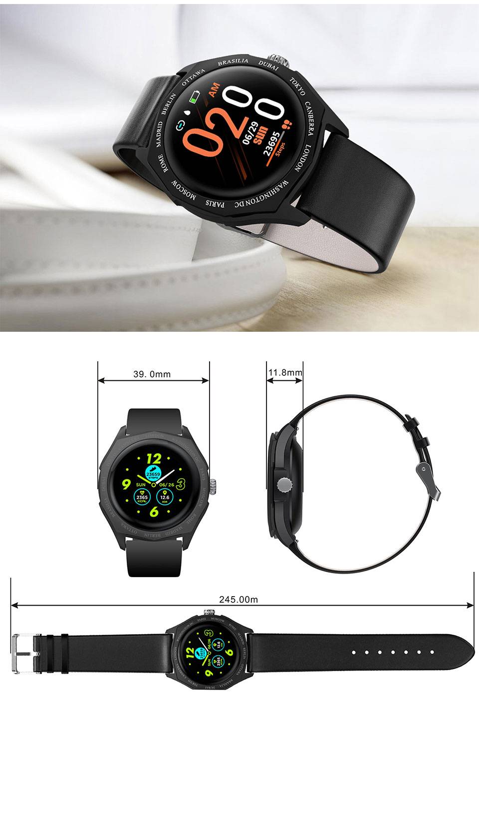Основной чип: Nrf52832 Дисплей: 1,22 дюймов IPS разрешение цветного экрана 240*240 Тип аккумулятора: литий-полимерный аккумулятор 180 мА · ч Энергопотребление в режиме ожидания: в режиме ожидания 10 ~ 15 дней, нормальное использование 6 ~ 8 дней Тип Bluetooth: Bluetooth 4,0 Поддержка приложения: H Band Требования к системе мобильного телефона: Поддержка Android 4,4 и выше, Apple IOS8.0 или выше