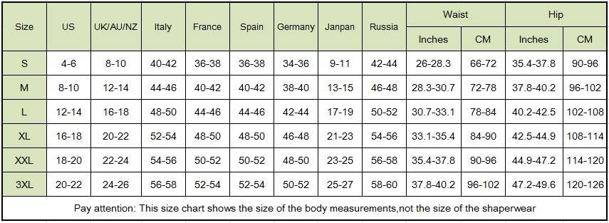 Выбор размера корректирующего белья должен быть основан на вашей талии и бедрах, а не на размере вашей обычной одежды! Примечание 1: 1 дюйм = 2,54 см, 1 см = 0,39 дюйма, 1 Чи = 33,3333333 см