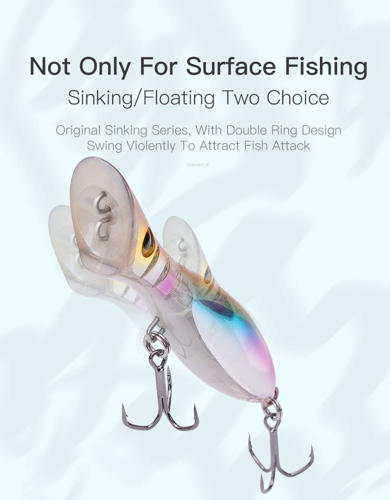 Это последняя приманка из королевства, название этой приманки-SNAKEPOP, -Двойное действие колец разные положения плавания будут иметь разные эффекты -Плавающий и тонущий -Хорошее отражение светильник легко дать рыбе знать приманку -Возбуждают больше атакующих желаний шум шарик внутри -Водный цветок и пузырь привлекают большой рот и особую форму щек Его тонущее плавательное действие просто производится скоростью восстановления вы примените: -Высокий стержень, он плавает на поверхности -Поперечный стержень под линией поверхности -Низкий стержень, медленно под поверхностью На остановке змеепоп мягко струится спиралью "падающей вниз", как раненая рыба. Будет легко принять желаемое плавание в соответствии с типом встречающихся условий. Поддерживает как высокую скорость восстановления, так и сверхмедленное действие.