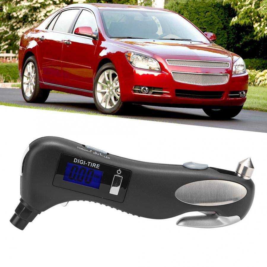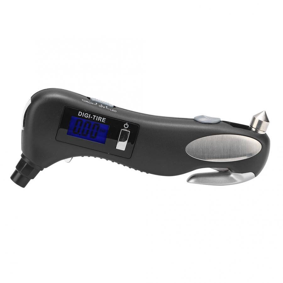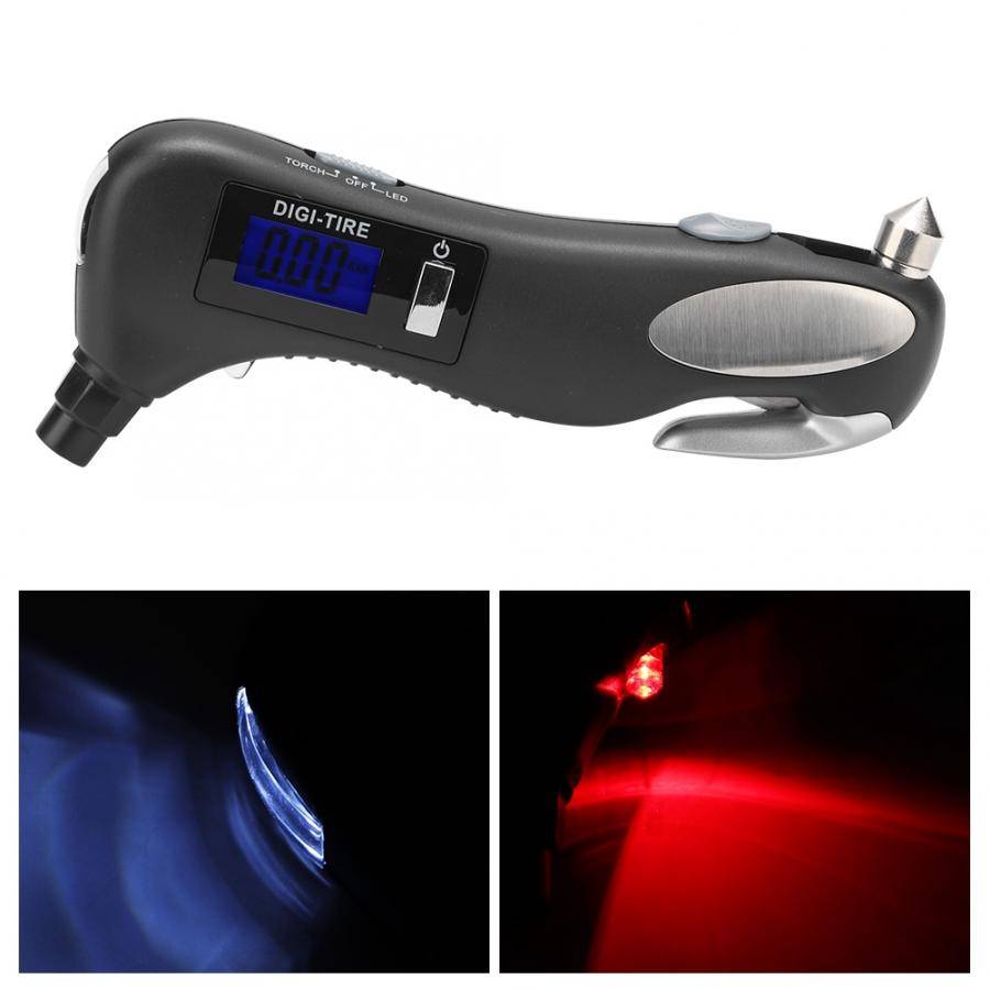 Функция: измерение давления в шинах, фонарик, безопасный молоток, резец ремня безопасности