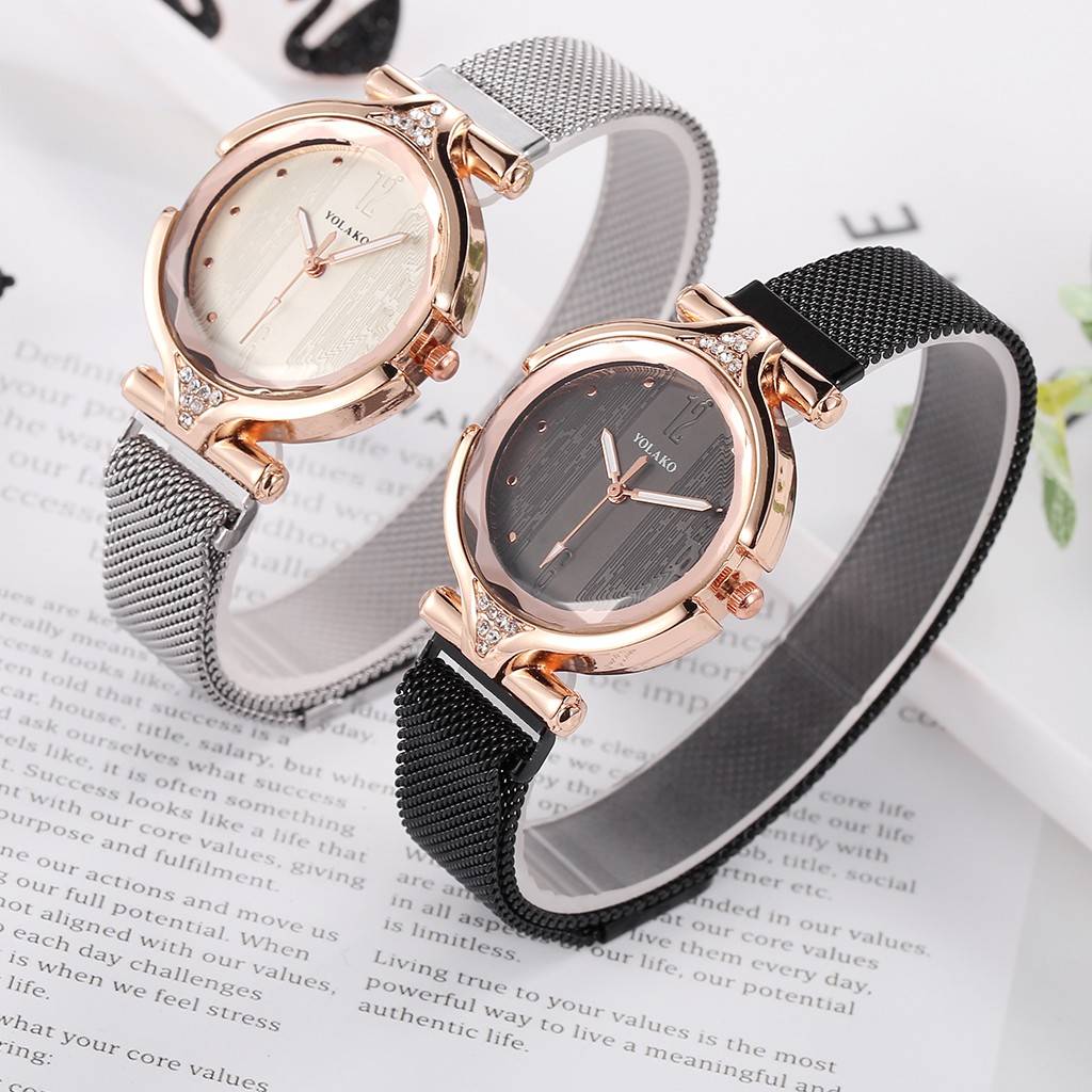 YOLAKO, модные женские часы с магнитной пряжкой, розовое золото, сетка, нержавеющая сталь, женские наручные часы, часы женские, reloj mujer, подарок