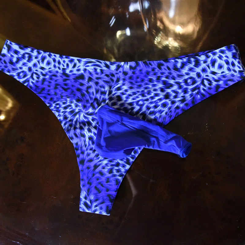 Трусы-стринги мужские леопардовые из вискозы, с мешочком для пениса