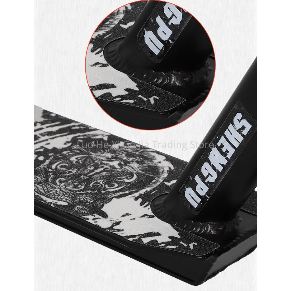Лента для захвата на палубе: На палубе имеется Прочная рукоятка. Он удерживает ваши ноги от скольжения, чтобы вы могли сфокусироваться на своей езде. Гибкий металлический ножной тормоз для легкого контроля скорости.