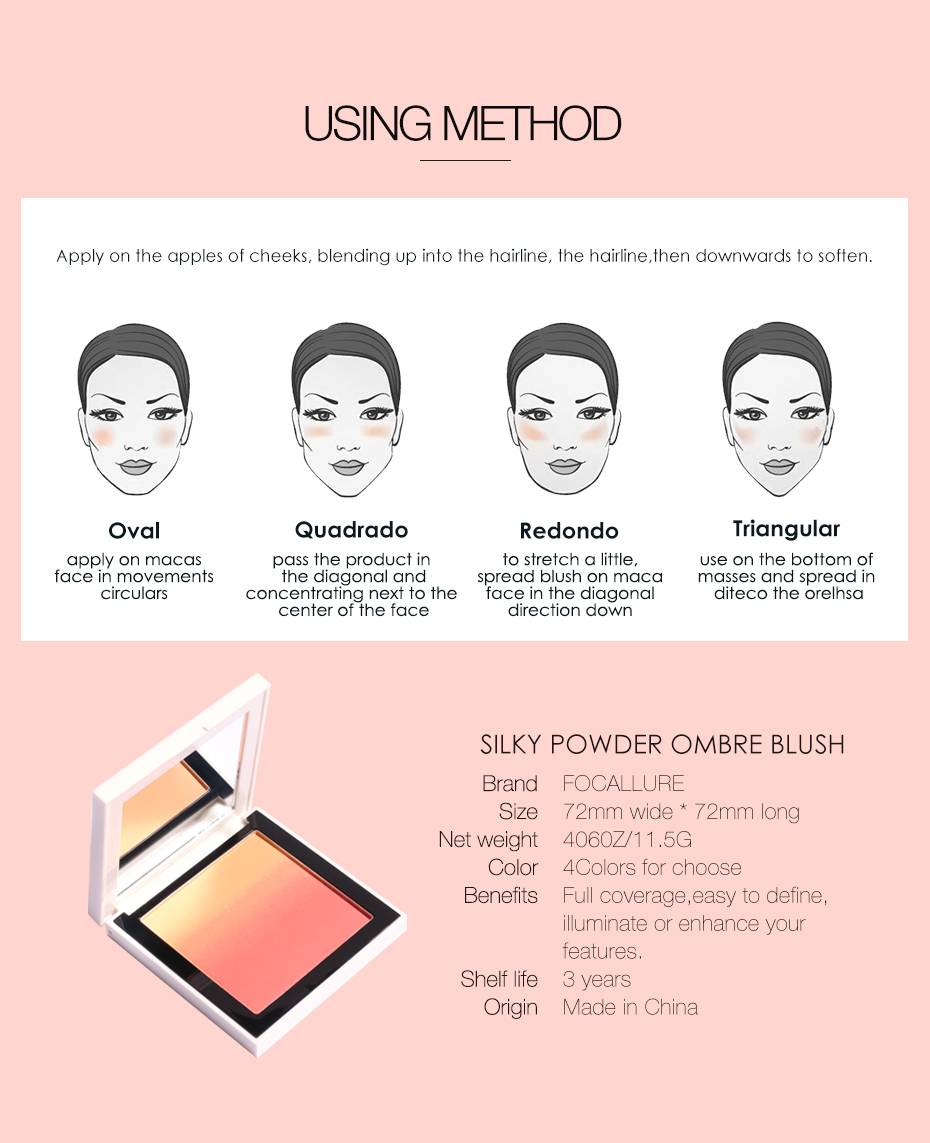 Бренд FOCALLURE, Румяна для лица, палитра, натуральный розовый, водостойкий, долговечный, шелковистый, оранжевый порошок, профессиональные румяна, макияж