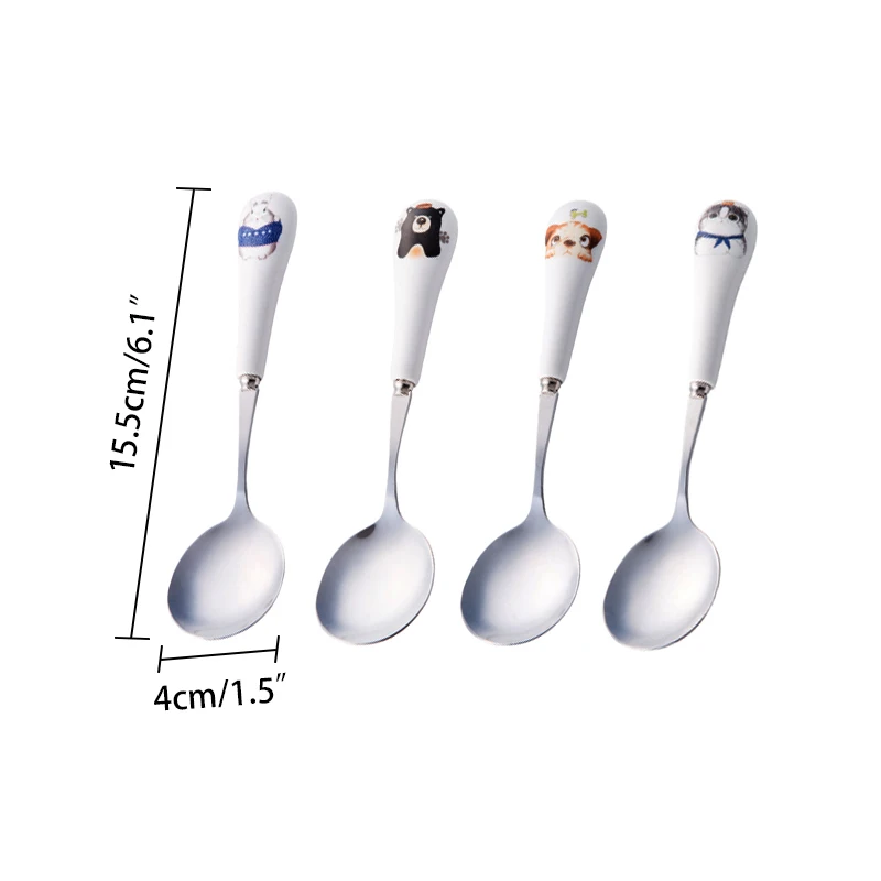 4 шт., детская ложка с героями мультфильмов, детский набор посуды, милый кот, круглая чайная ложка, десерт, перемешивание, фрукты, кофе, совок с керамической ручкой