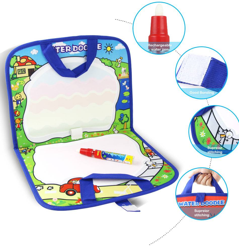 Рисуйте, Отслеживайте, никогда не создавайте беспорядок! Создайте ручку водой на волшебном коврике. Дети очарованы красочными Изображения приподнимаются вверх, а затем медленно исчезают. Дизайн сумочки позволяет легко носить с собой и больше подходит для путешествий. Детский коврик выглядит очень мило.