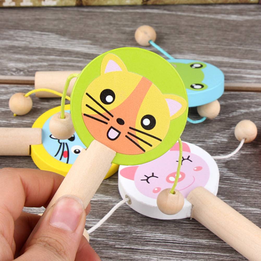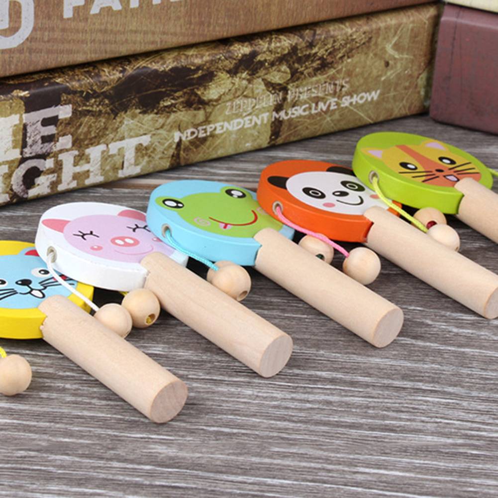 Деревянная Ручная Музыкальная погремушка в виде мультяшного животного, барабан, шейкер, развивающая детская игрушка