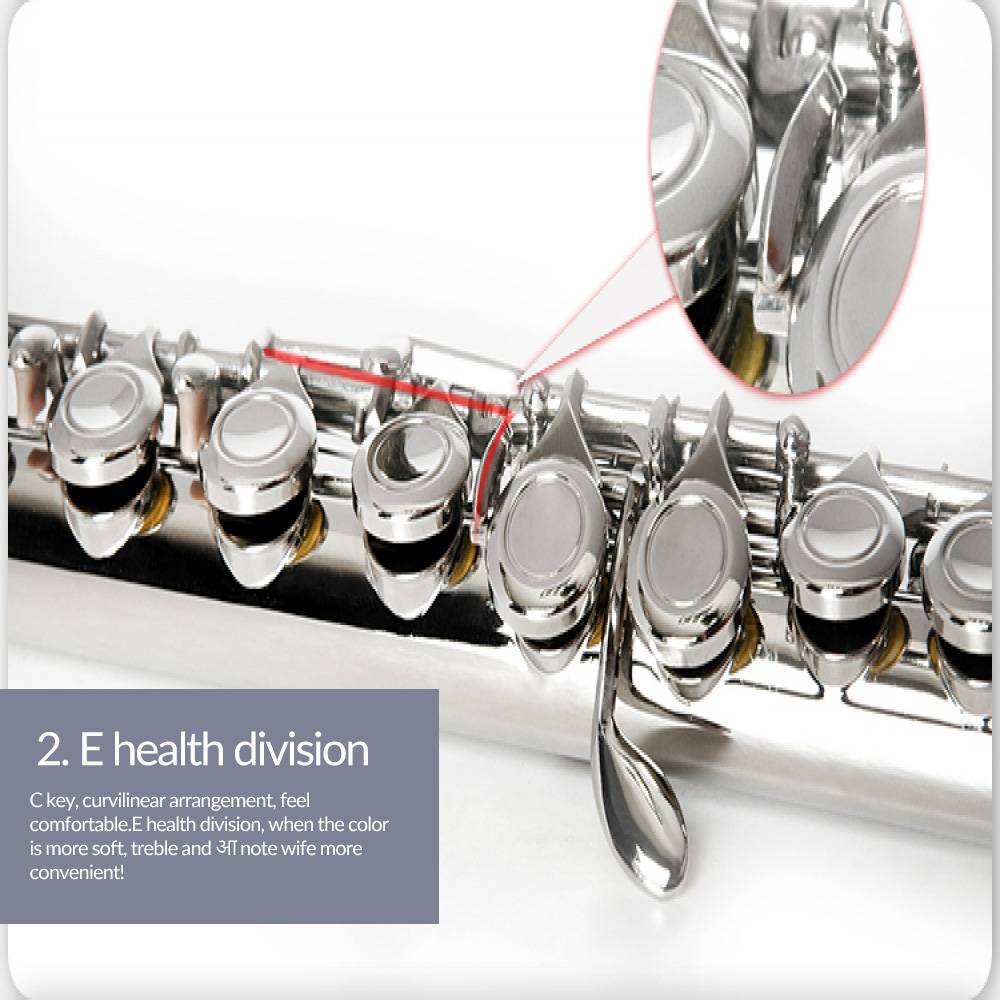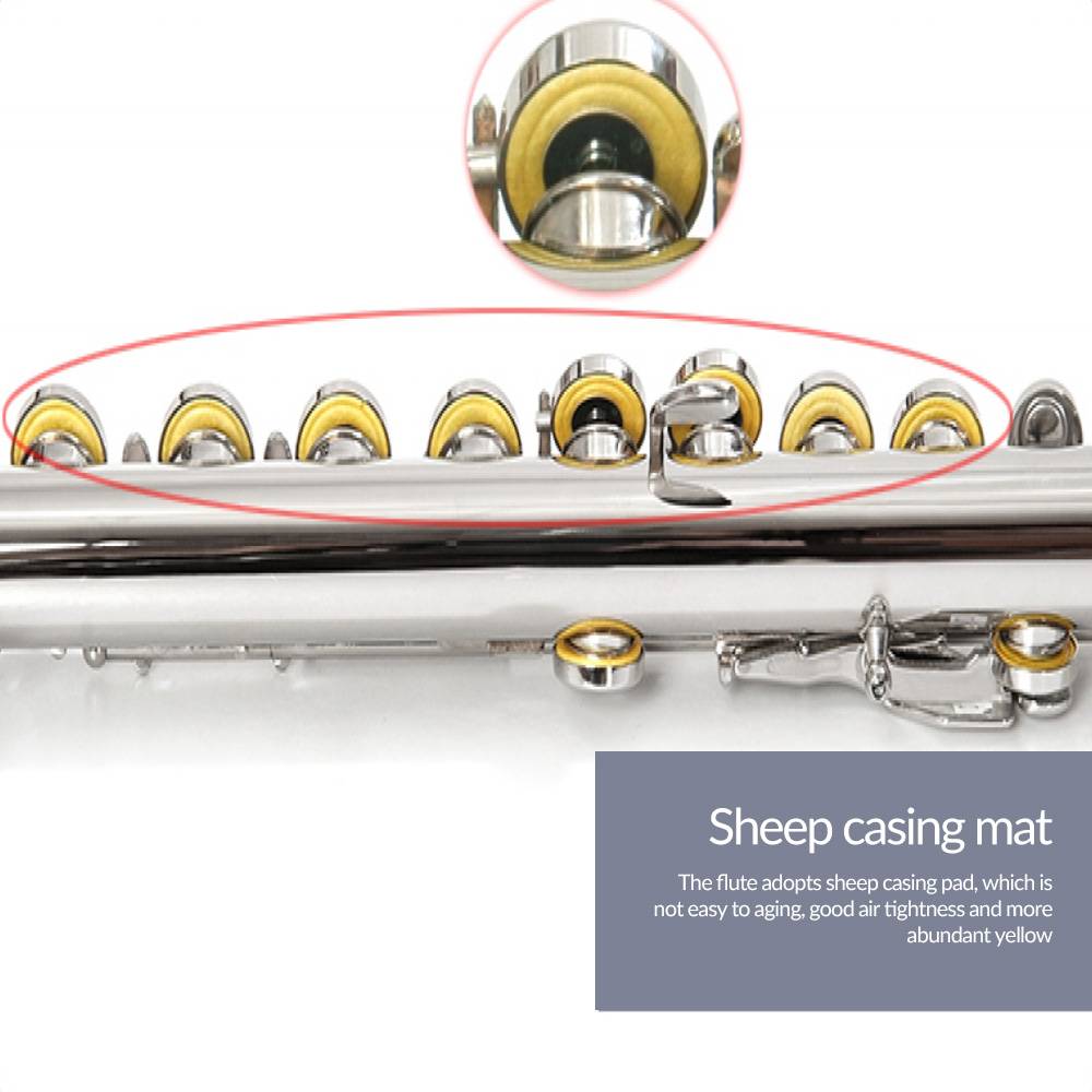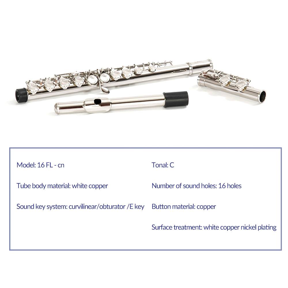 Особенности C-type Флейта с 16 закрытыми отверстиями, никелированный, высокое качество, G и E ключи отделены, является хорошим подарком для любителей или начинающих; Прочная Pro-deluxe нейлоновая войлочная подкладка, светильник, держатель для жесткой оболочки, мягкая тряпка, чистящая палочка, соединительная смазка, регулировочные винты и пара белых перчаток; Высококачественные двойные подушечки для мочевого пузыря, Кожаные подушечки обладают хорошей водонепроницаемостью и устойчивостью к воздуху; ПОГО булавки, эластичные ленты из овчины обладают хорошей эластичностью и длиной;