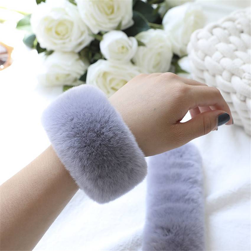 Пара плюшевых плащей из меха кролика Рекс, Браслет-манжета, зимние теплые женские толстые перчатки с эластичными рукавами