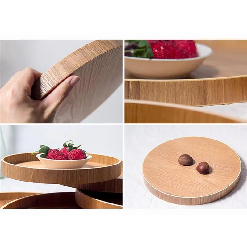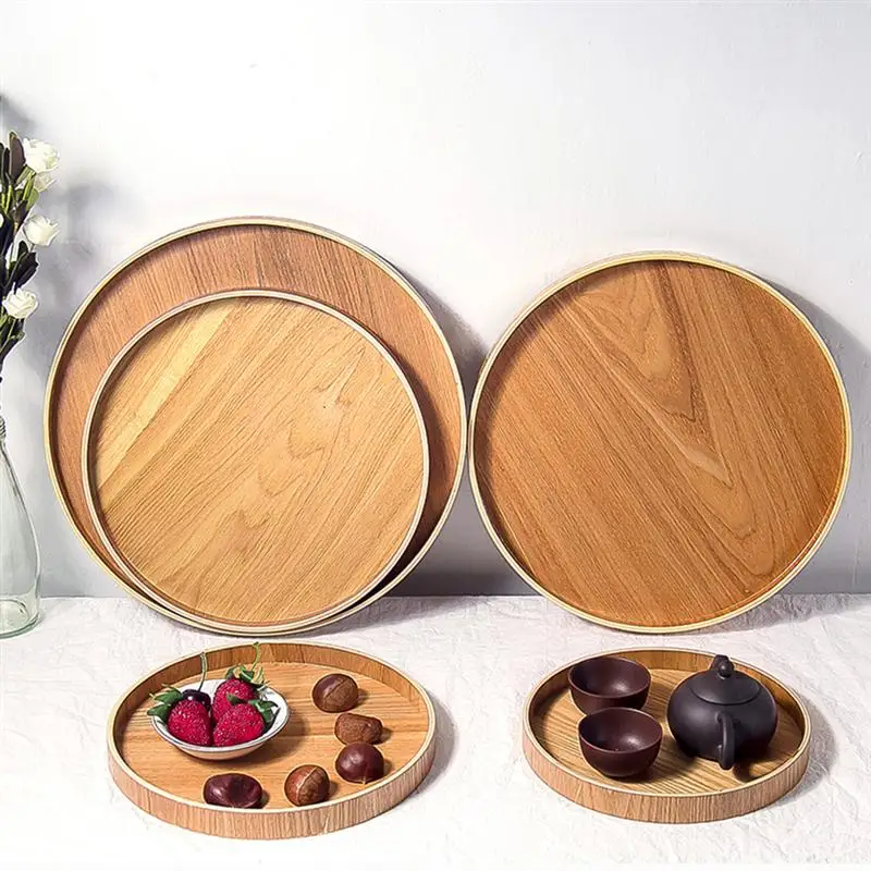 -Креативный круглый поднос из дерева, с уникальной текстурой древесины.