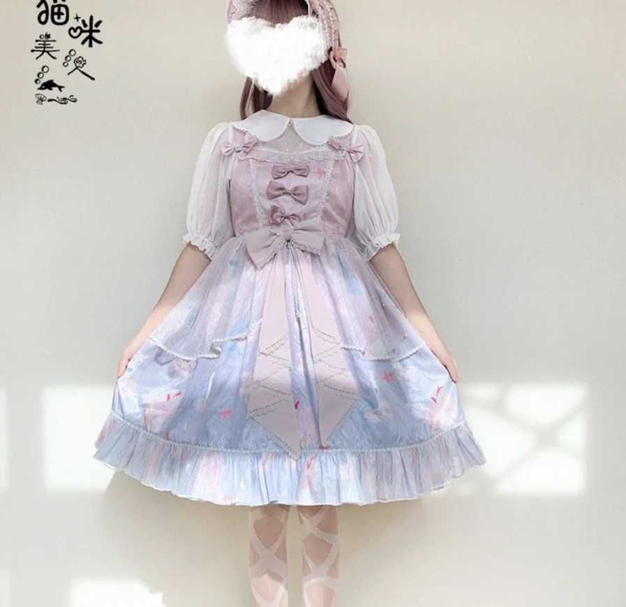 Маленькая кошка, принт Виктории, косплей loli kawaii, средняя талия, милая девушка, кружева, стиль колледжа, Лолита, принцесса, бант, Лолита, jsk