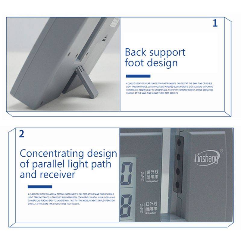 LS101 Способен измерять и отображать УФ-излучение, ИК-излучение и видимое значение передачи на светильник одновременно. Этот счетчик представляет собой автономный светильник и самокалибровку. Нет необходимости в ручном регулировании. Пользователям нужно только подключить источник питания, включить переключатель и поместить солнечную пленку в слот. Полученные данные производительности будут отображаться на интерфейсе дисплея.