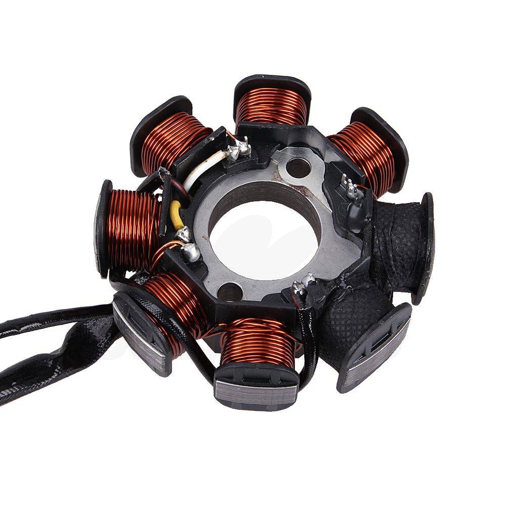 -Пожалуйста, убедитесь, что размер соответствует вашему мотоциклу перед покупкой, спасибо за понимание -- Не все двигатели GY6 используют рычаг 8 статора (некоторые 50cc рычаг 6 и некоторые 125cc 150cc 8 рычаг) -- 8 полюс статора будет работать на любом GY6 50cc 139QMB (и многие другие страны, такие как 2-штрихи) до тех пор, пока вы имеете в тон 8 полюс Маховик Ротор, чтобы одеться с ним и 4/5 провода. -- Когда вы заказываете генератор статора, убедитесь, что он соответствует количеству полюсов, для которых был сделан ваш ротор. И в обратном направлении, если вы заказываете ротор маховика, убедитесь, что он соответствует количеству полюсов на вашем статоре. -- В том случае, если вам необходимы оба товара, а также заказать в комплекте 8 полюс статор генератора и Маховик Ротор. -- Это может быть переменного или постоянного тока, поэтому убедитесь, что он подходит для ваших двигателей электрической системы. -- Для некоторых скутеров. Вездеходы и картинг, с 150cc 4-тактный GY6 моторы -- Для некоторых китайских скутеров, квадроциклов, картов с 150cc GY6 моторами -- Для некоторых моделей JONWAY, JMSTAR, ROKETA, SUNL, TANK, PEACE, TAOTAO, GATOR и многих других -- Например, для BAOTIAN, BASHAN, BENZHOU, CFMOTOR, CHARMING, DAYANG, DINLI, FUXIN, GEELY, GILERA, HANGLONG, HAOJIN, HAOJUE, HISUN, HONGZHOU, HUATIAN, JIAJUE, JIANSHE, JINLUN, JMSTAR, JONWAY, KAITONG, KEEWAY, KINROAD, KYMCO, LIFAN, LINGBEN, LINGTIAN, LINHAI, LINTEX, LONCIN, LONGJIA, MAWI, meido, MOTORRO, PIAGGIO, QINGQI, RHON, RIEJU, SACHS, SHINERAY, SKYGO, SUKIDA, TAOTAO, VESPA, VONROAD, WANGYE, WONJAN, XINGYUE, XINLING, XINTIAN, YIBEN, YINGANG, ZHONGYU, ZNEN, ZONGSHEN и т. Д.