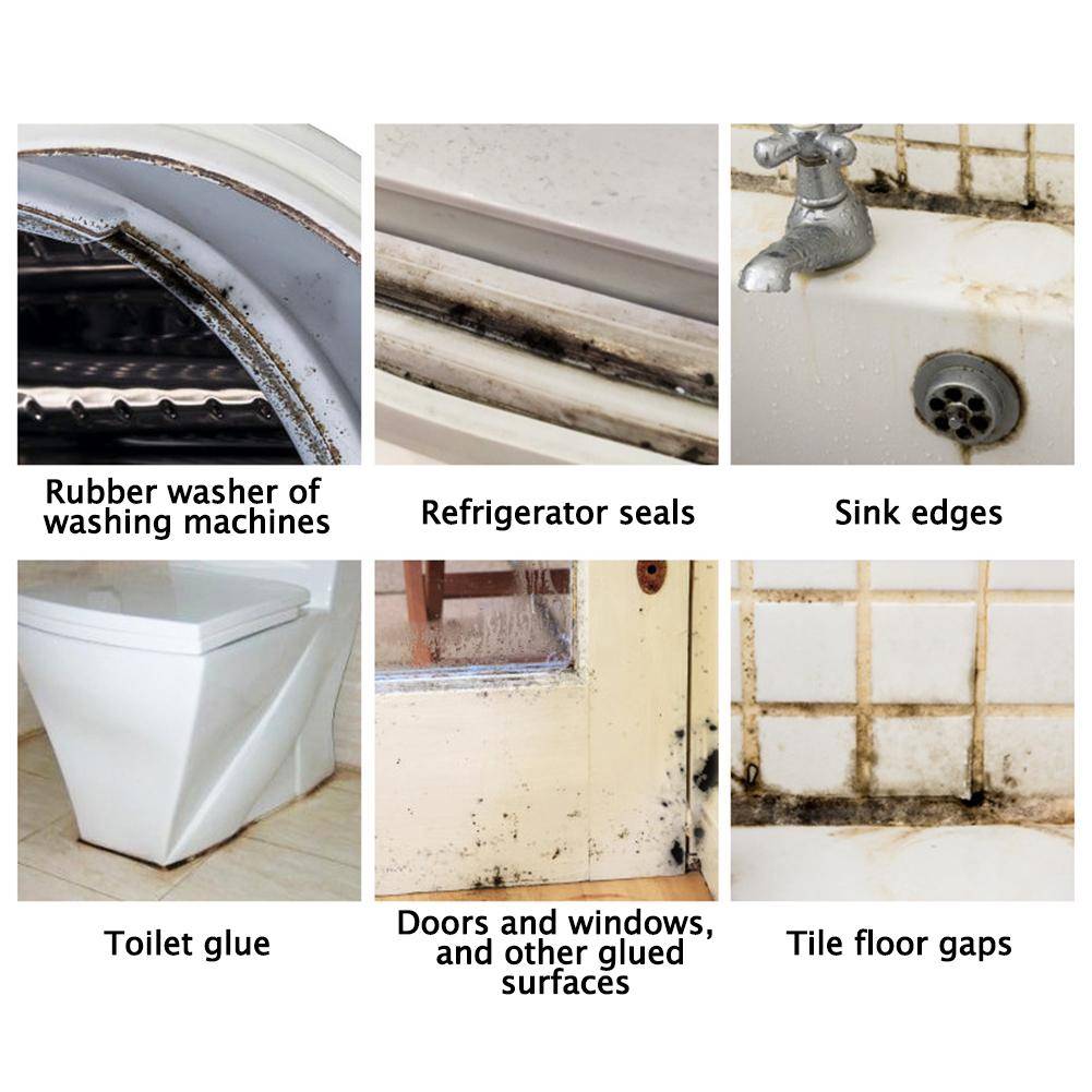 5. Широкое применение: гель для очистки плесени подходит для очистки Резиновой Шайбы стиральных машин, уплотнений холодильника, краев раковины, дверей и окон, а также других склеенных поверхностей, зазоров пола плитки и т. д.