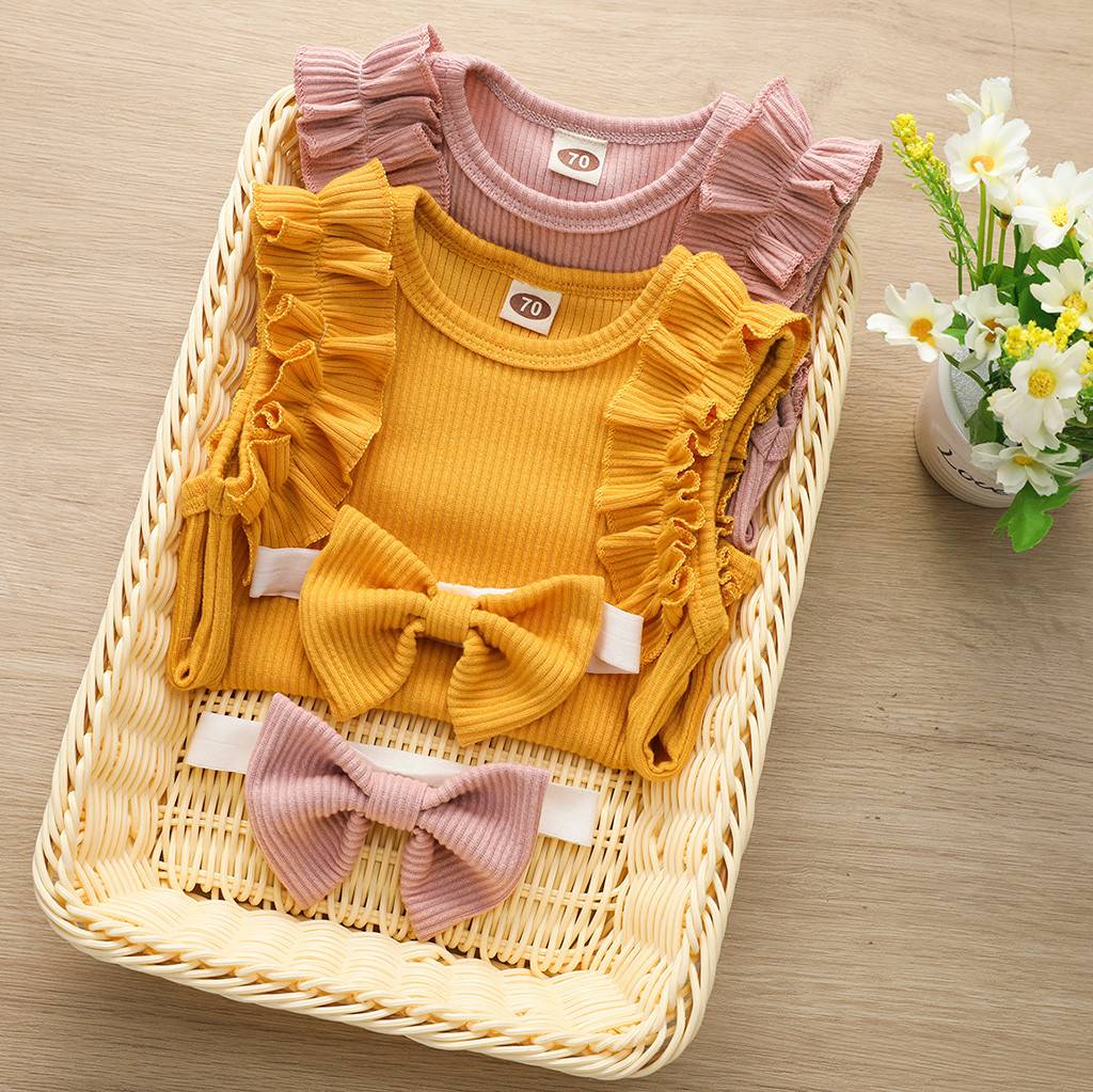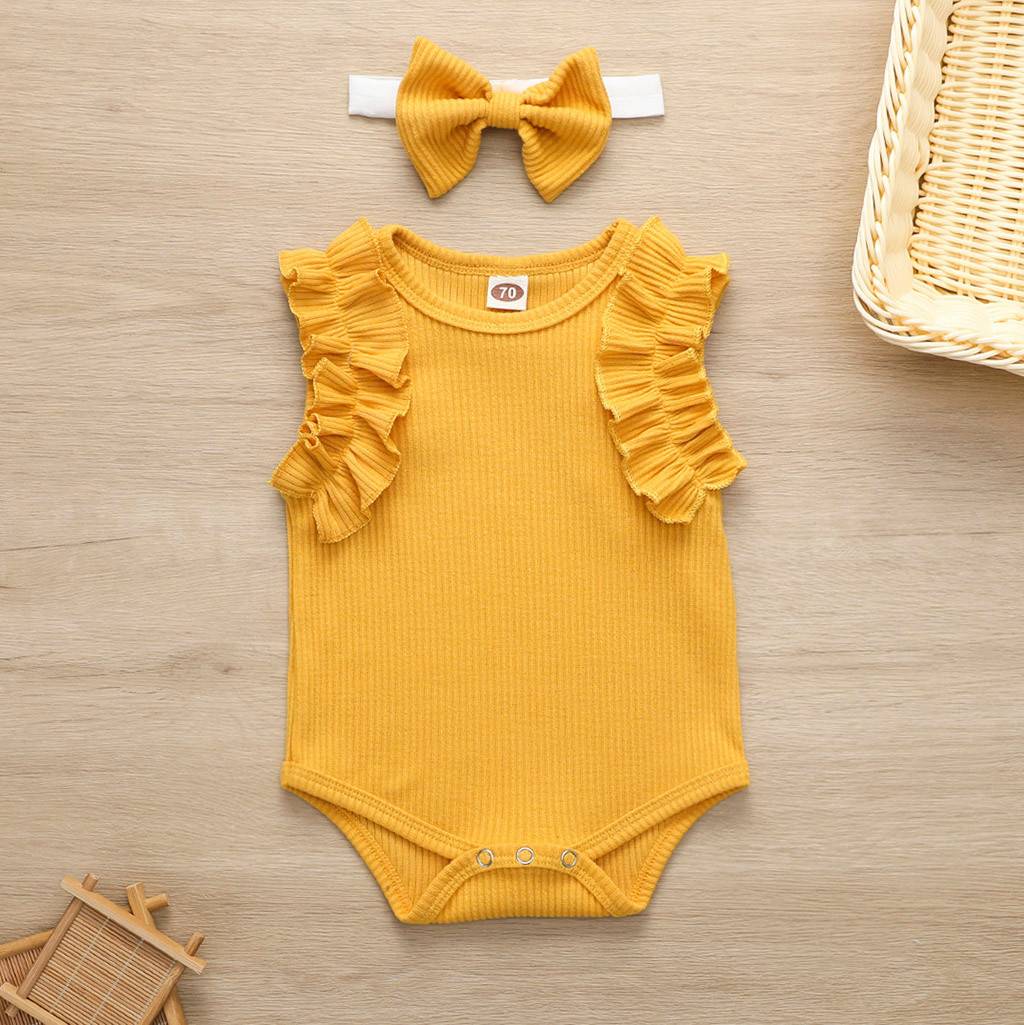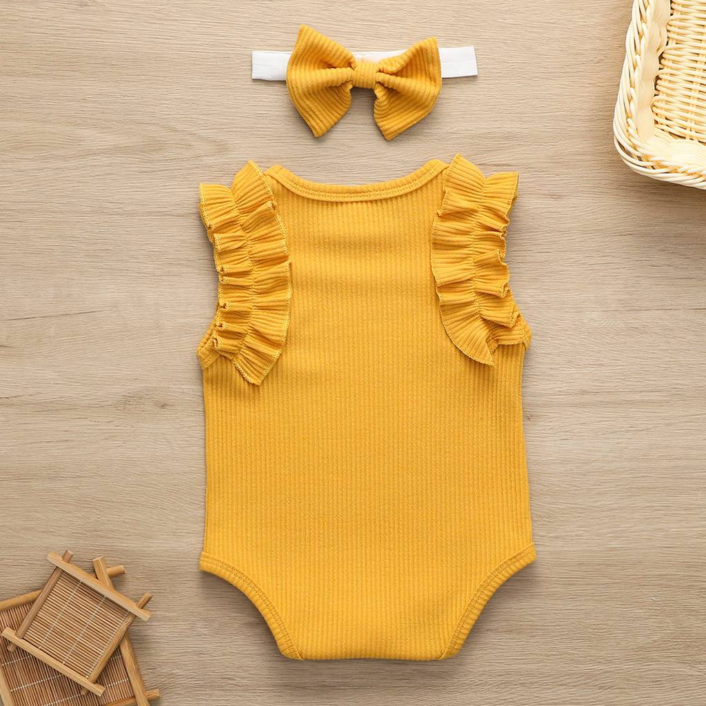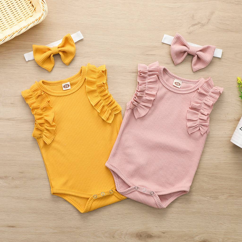 Комплект из 2 предметов, одежда без рукавов для новорожденных девочек милый комбинезон-Ползунки с оборками + повязка на голову с бантом, комплект одежды, зимняя одежда для новорожденных