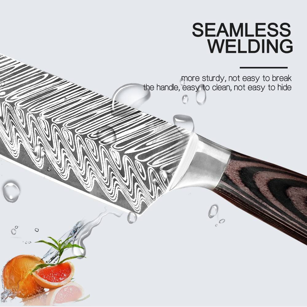 1*8 дюймовый нож шеф-повара 1*8 дюймов нож для нарезки 1*7 дюймов нож Santoku Ножи 1*5 дюймов нож Santoku Ножи 1*5 дюймов Универсальный Ножи 1*3,5 дюймовый фруктовый нож 6 * Ножи крышка Материал ручки: цветная древесина Материал лезвия: нержавеющая сталь Форма ручки: изгиб ручки 1. Этот нож высшего класса был полностью изготовлен из искусственной кожи на нашей фабрике. Он функциональный и хорошо сбалансированный, хорошо подходит для практики и коллекций! 2. Лезвие этого ножа высшего класса прочное и острое благодаря большему количеству процедур. Он высококлассный и прочный. 3. Это универсальный нож, который вы должны иметь. Это тот, который вы хотите, чтобы он был расширением вашей руки. Если вы хотите нож, то это один для всего. Конечный Режущий инструмент для повседневного измельчения и измельчения фруктов, овощей, мяса и рыбы. Он известен как лучший друг шеф-повара. 4. Обратите внимание: из-за различных методов измерения размер и вес продукта могут иметь небольшую погрешность; Пожалуйста, не помещайте в посудомоечную машину.