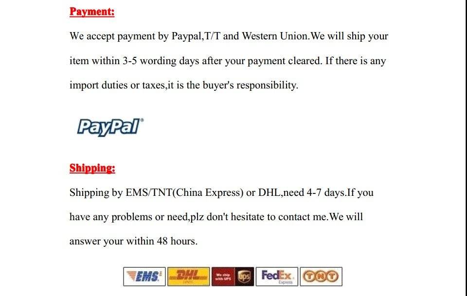 3. Пожалуйста, напишите нам, прежде чем оставить отрицательный отзывы или открыть любой спор на aliexpress. Мы заботимся о наших уважаемых клиентах и всегда будем стараться вам помочь. Если у вас возникнут какие-либо проблемы, сразу же свяжитесь с нами.